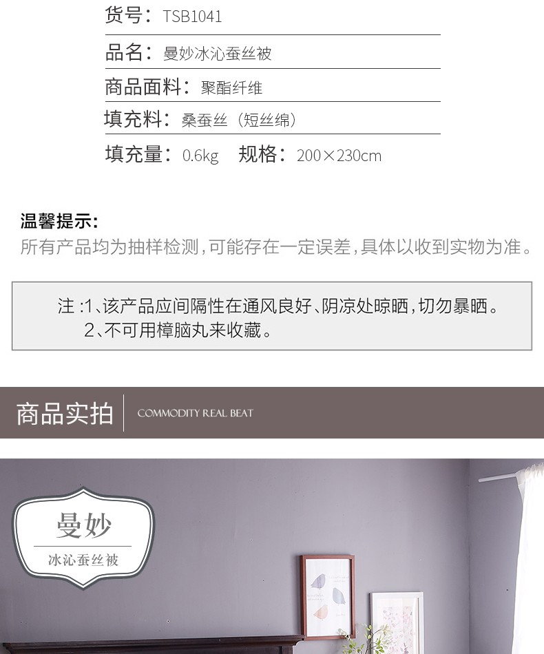 商品名称:恒源祥 曼妙冰沁蚕丝被TSB1041 200*230cm 600g 6941204314507