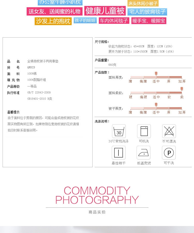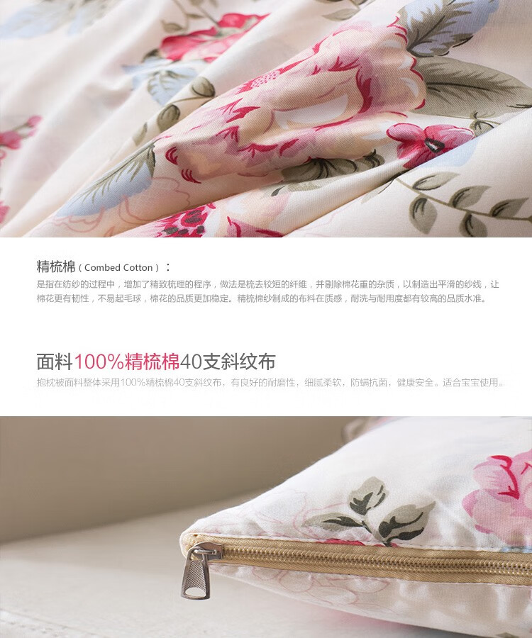商品名称:恒源祥 牡丹花全棉靠垫被TDK1001-1 45*45 110*140 6941204314897