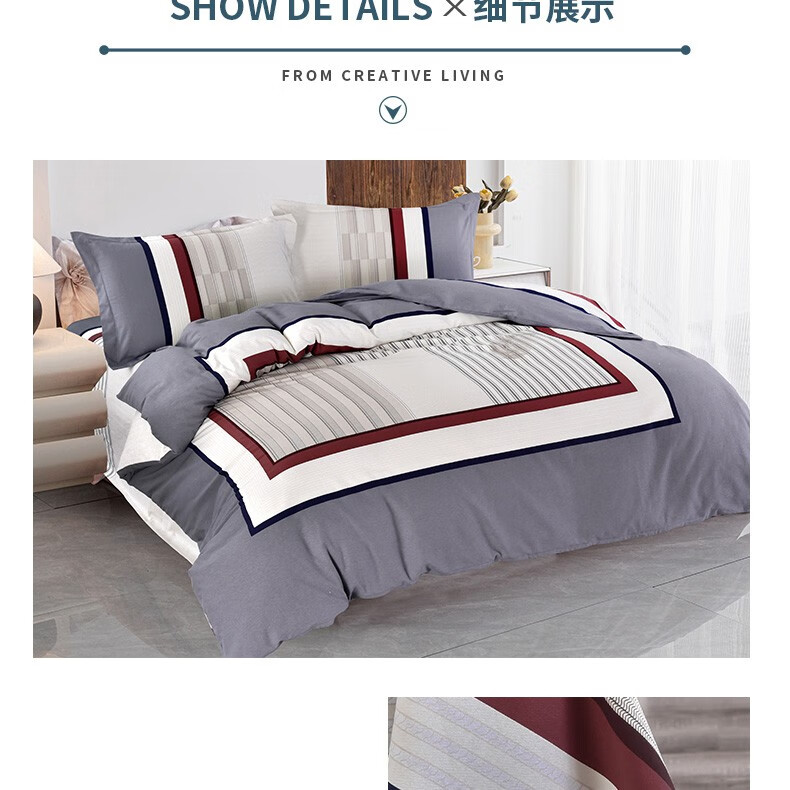 面料: 100%棉 规格:枕套48*74cm*2 被套200*230cm 床单250*245cm