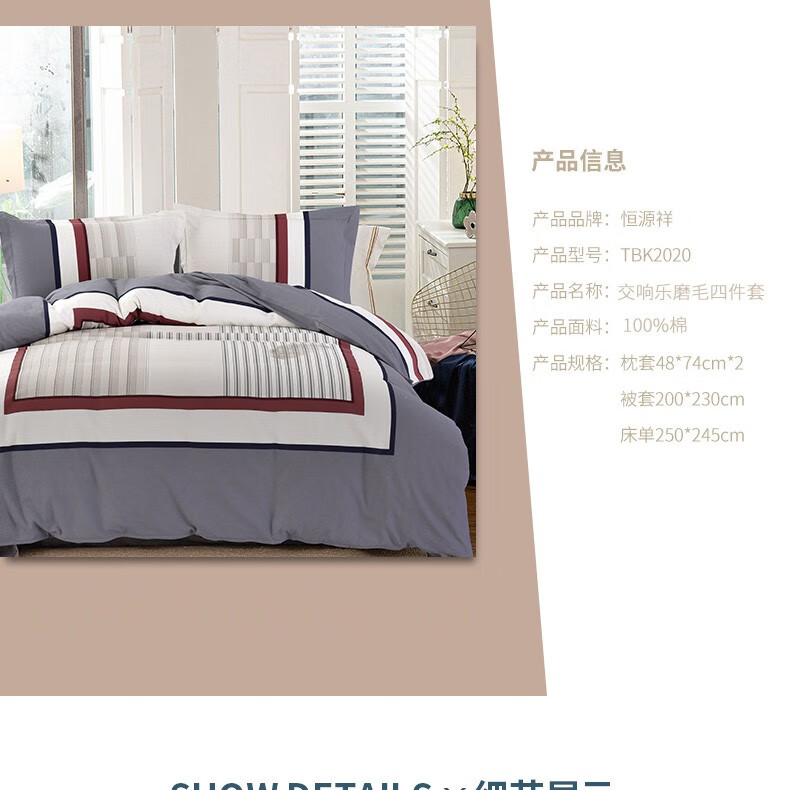商品名称:恒源祥 交响乐磨毛四件套TBK2020 200*230cm 6941204363291