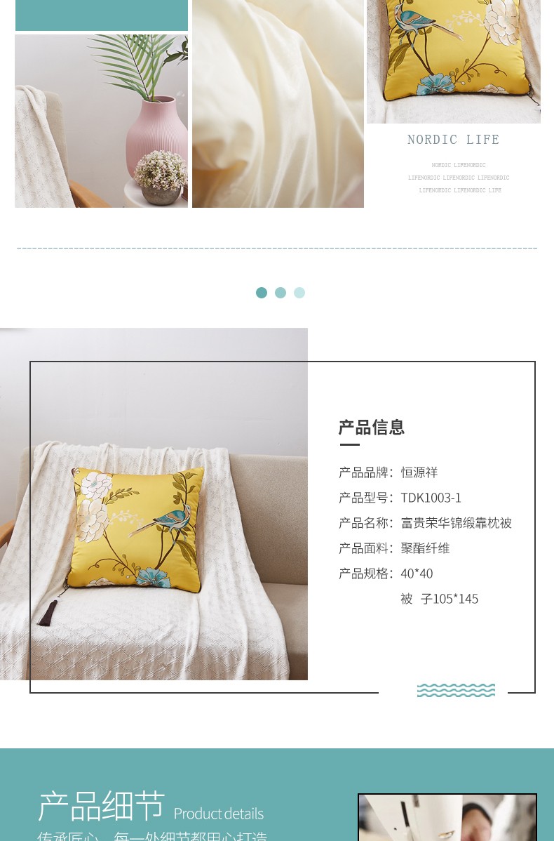 恒源祥 富贵荣华锦缎靠枕被 TDK1003-1 40*40 105*145 6941204313906