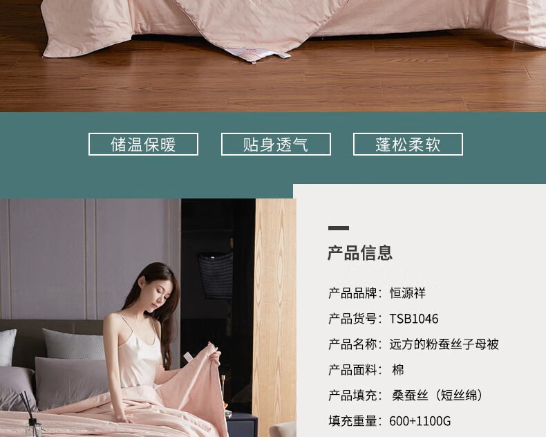 商品名称:恒源祥 远方的粉蚕丝子母被TSB1049 200*230cm 600+1100 6941204355791