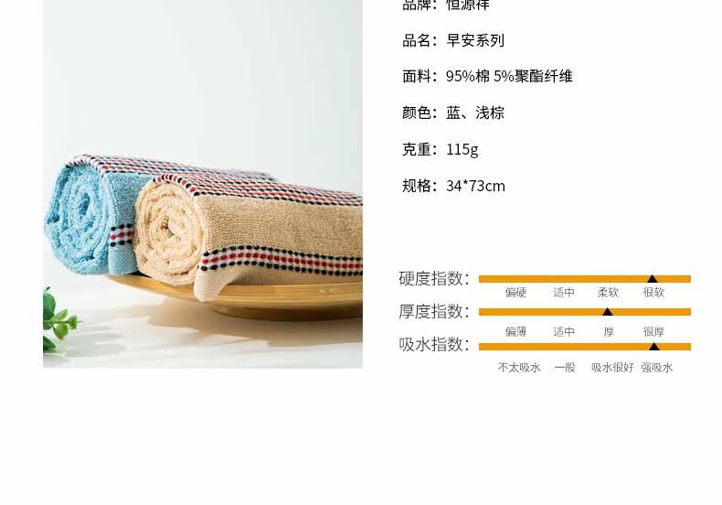 商品名称:恒源祥 早安系列毛巾4条装 TMG1009 34*73cm 115克 蓝/浅棕 可选下单备注颜色 6941204354084