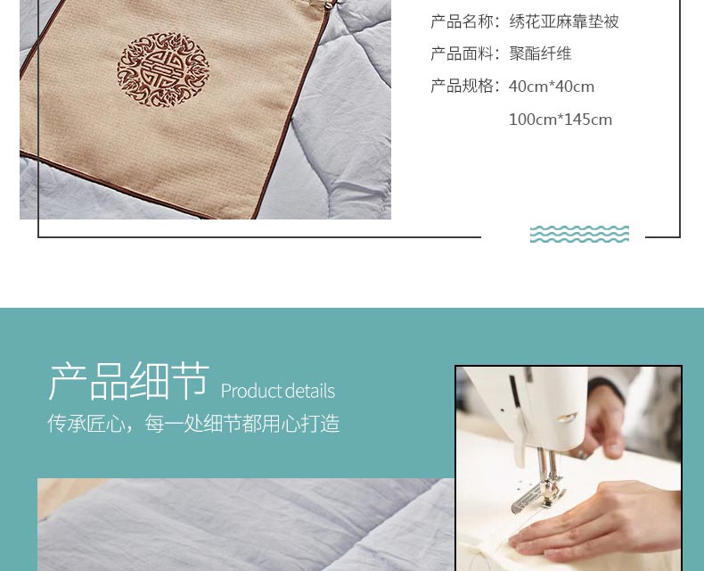 商品名称:恒源祥 绣花亚麻靠垫被 TDK1002-8 40*40 100*145 6941204315368