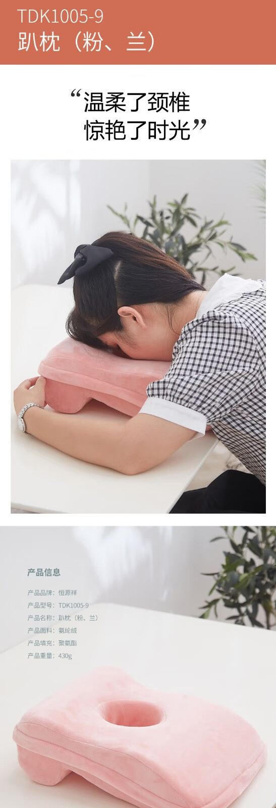 商品名称:恒源祥 趴枕(粉、兰)TDK1005-9 34*24*12 430g 红/蓝 可选下单备注颜色 6941204313876