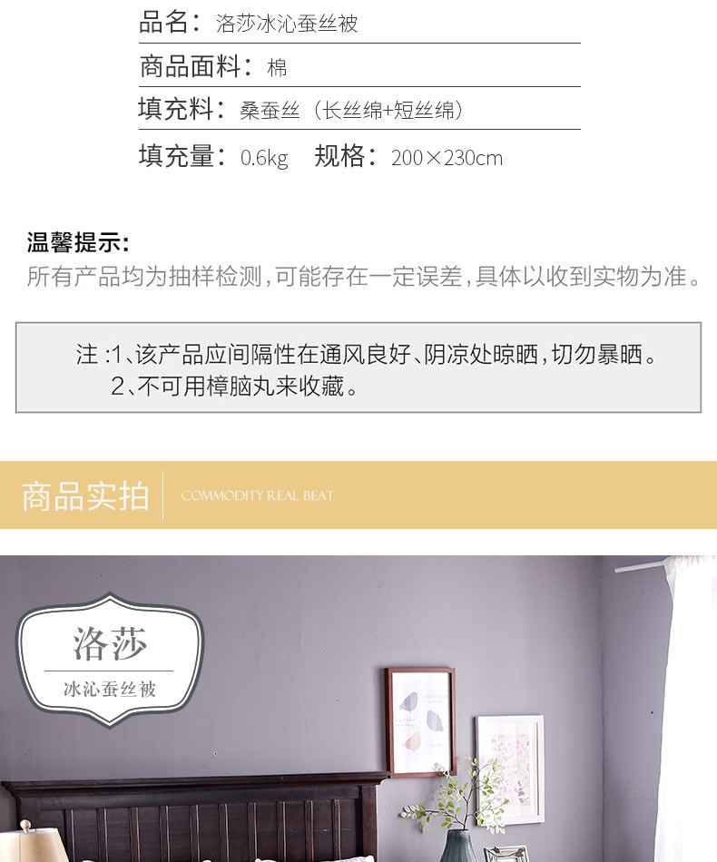 商品名称:恒源祥 洛莎冰沁蚕丝被TSB1039 200*230cm 600g 6941204314491