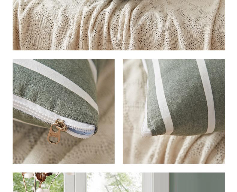 恒源祥 绿条全棉靠垫被 40*40 110*150 TDK1001-5 6941204315351