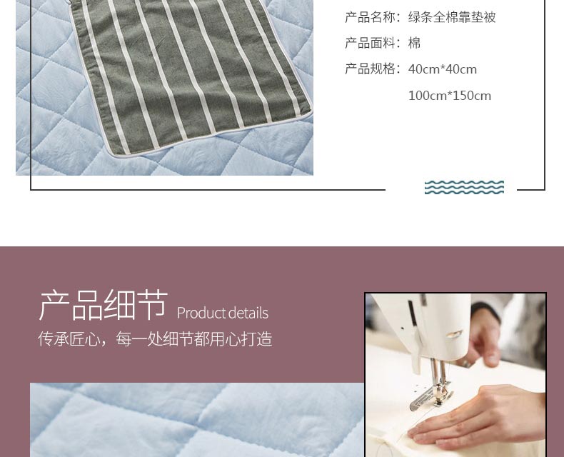 商品名称:恒源祥 绿条全棉靠垫被 40*40 110*150 TDK1001-5 6941204315351
