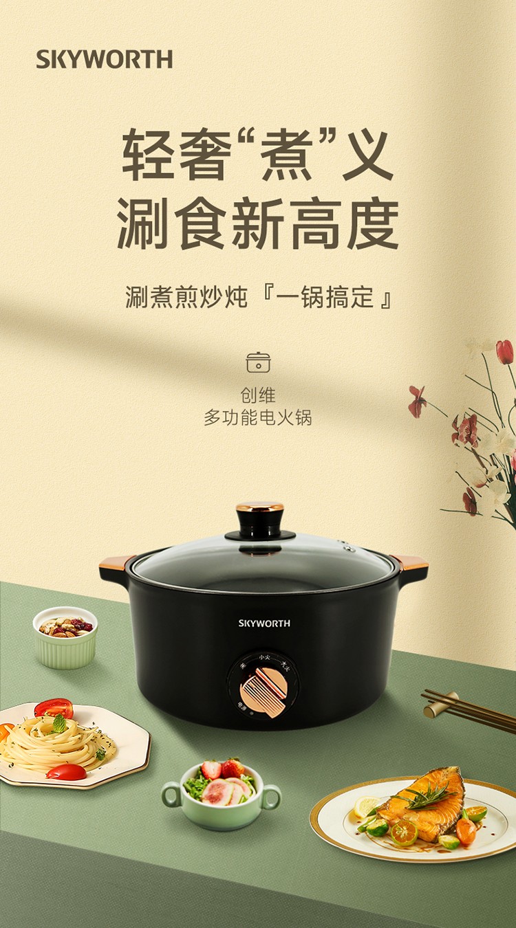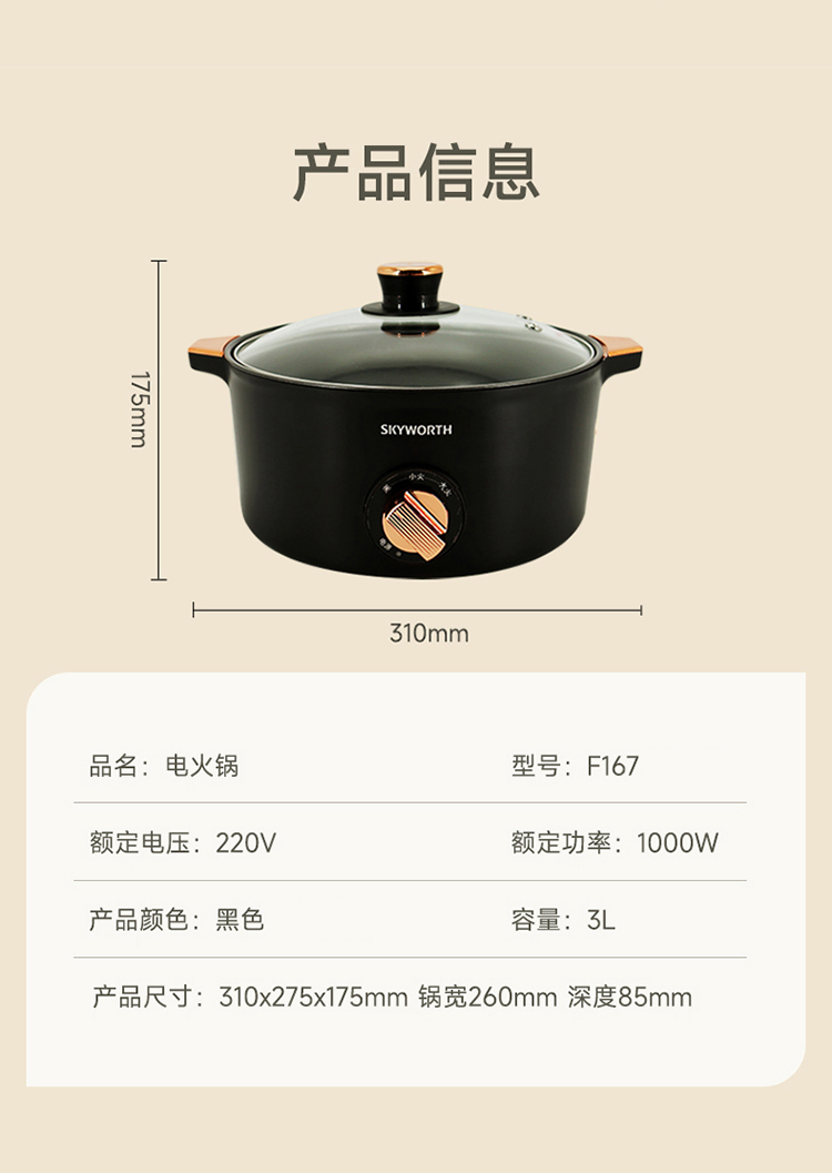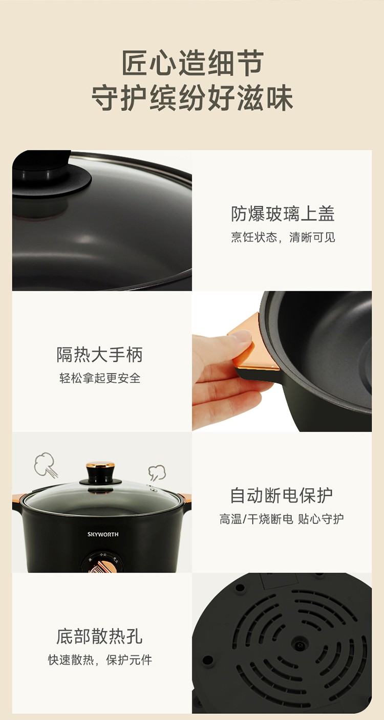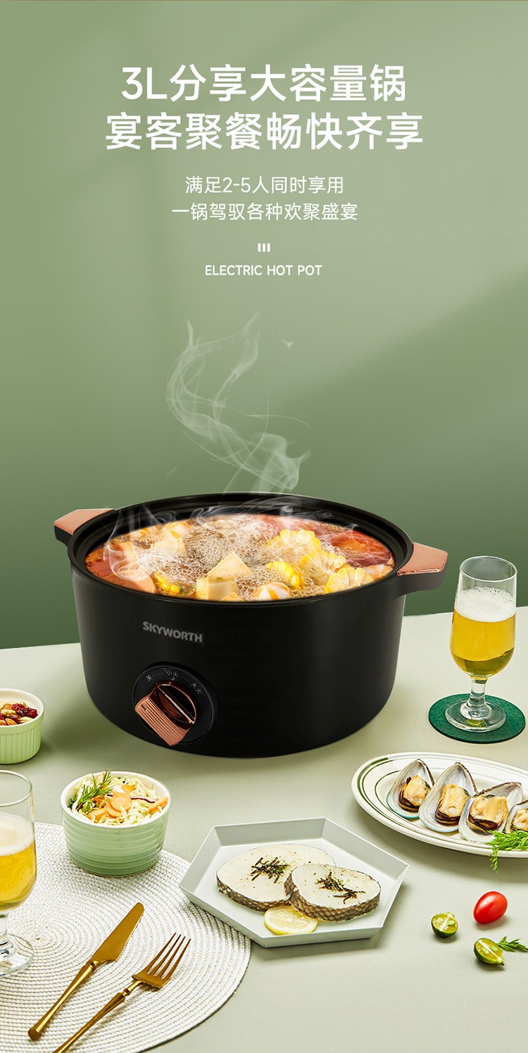 创维(Skyworth)多功能电煮锅3L大容量 F167 黑色 6926443308104