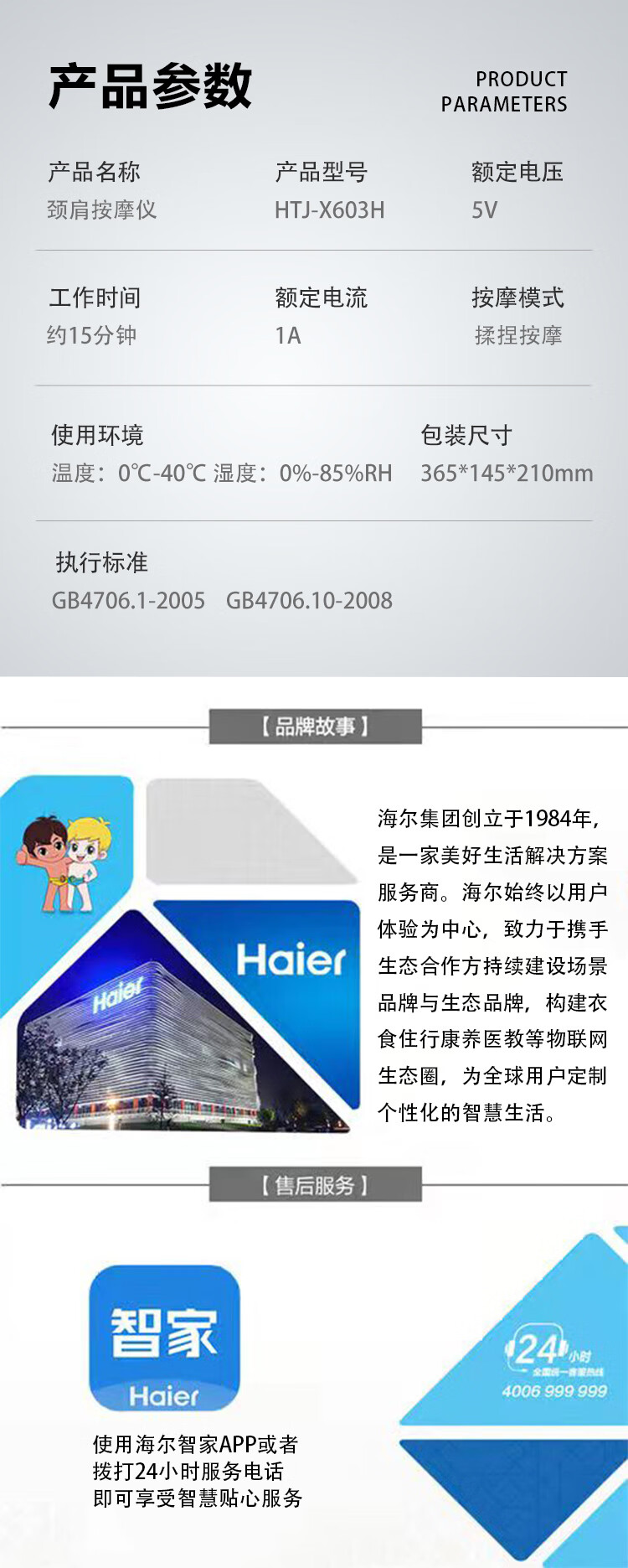 商品名称:海尔(Haier) 颈部按摩仪 HTJ-X603H 6928891303304