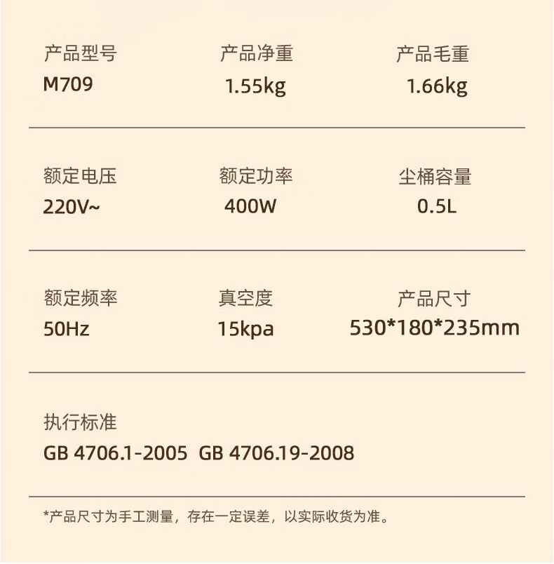 商品名称:乐视吸尘器M709(米黄色) 6976047980046