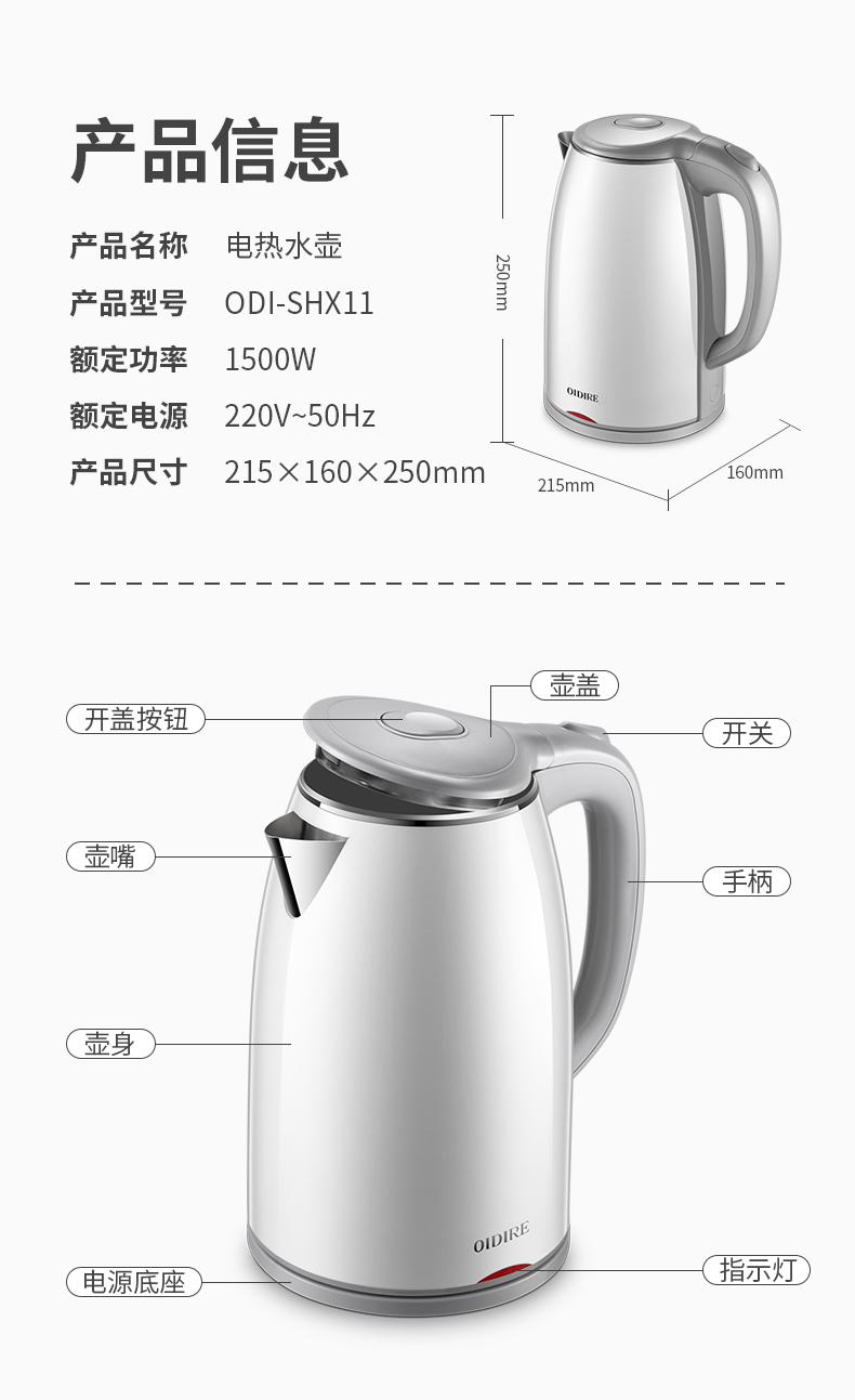 商品名称:德国OIDIRE电热水壶ODI-SHX11 1.8L