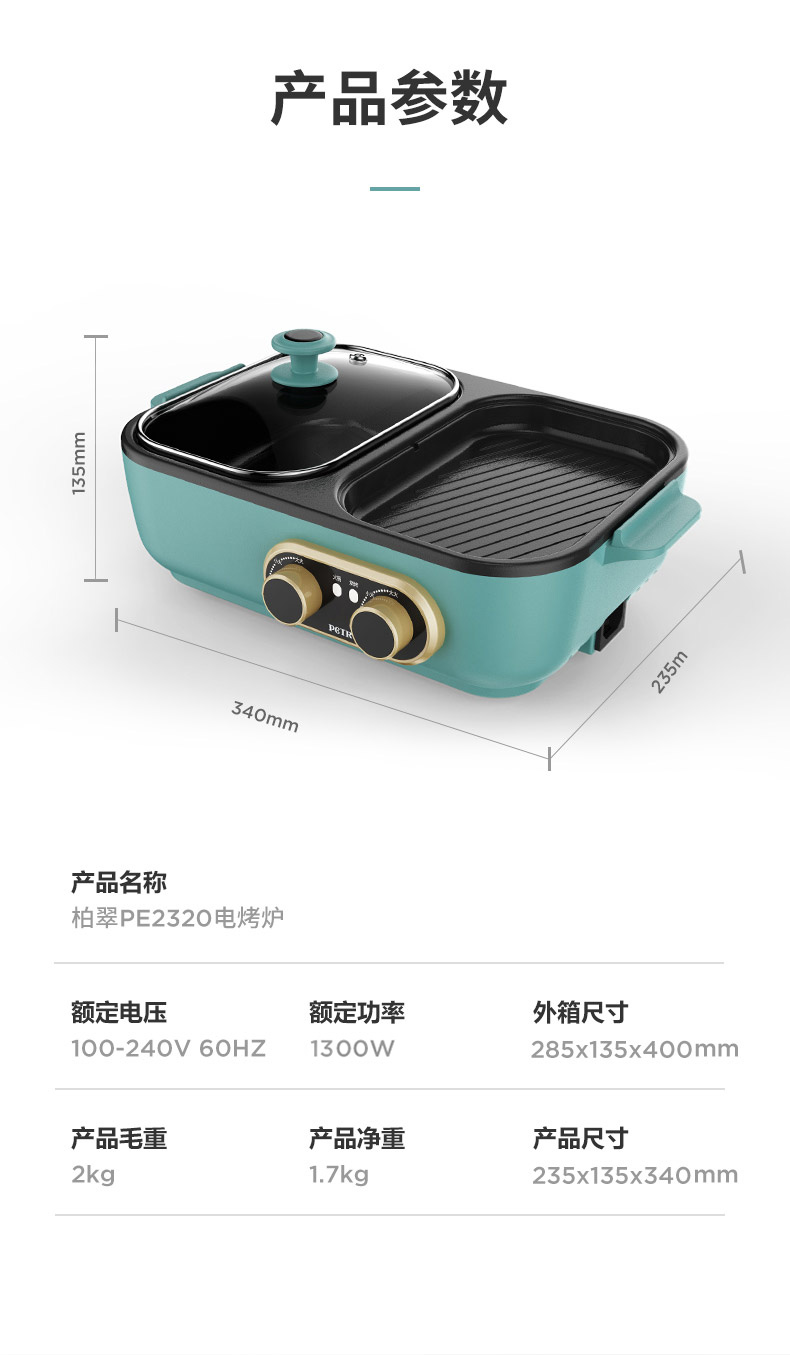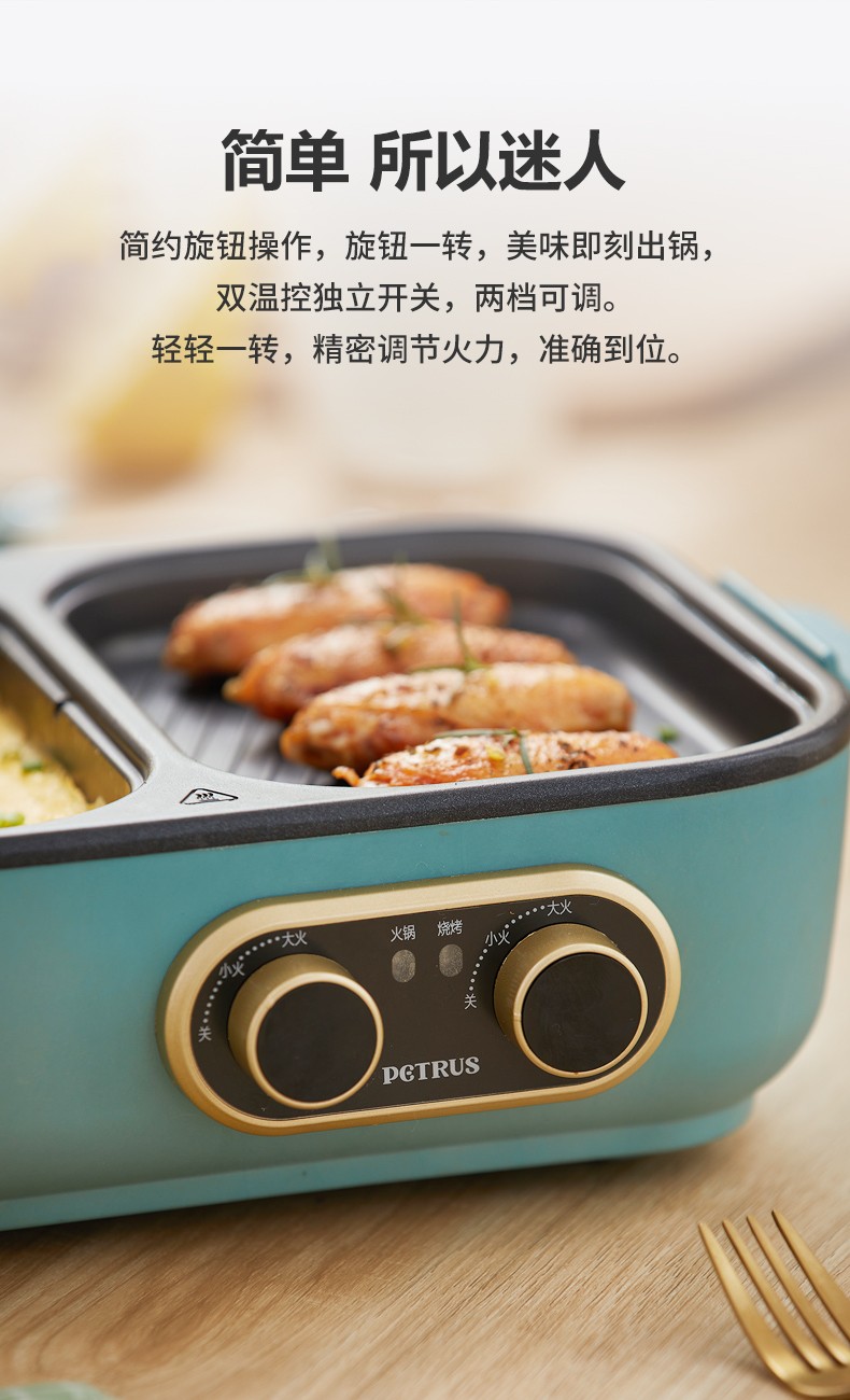 商品名称:柏翠(petrus)多用途锅烤涮锅 电热锅涮烤一体家用小型PE2320