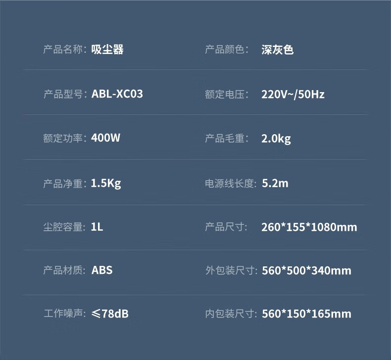 商品名称:艾贝丽 智能吸尘器(有线)ABL-XC03 黑色 6972149933188