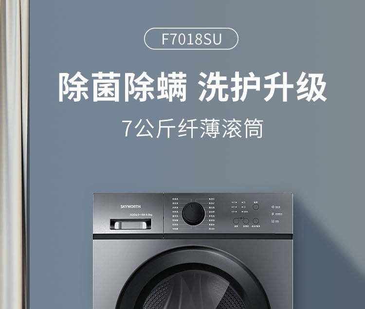 商品名称:创维(Skyworth)7KG 纤薄滚筒洗衣机 F7018SU 钛灰银色 除菌除螨(新疆西藏不发货)6923372284615