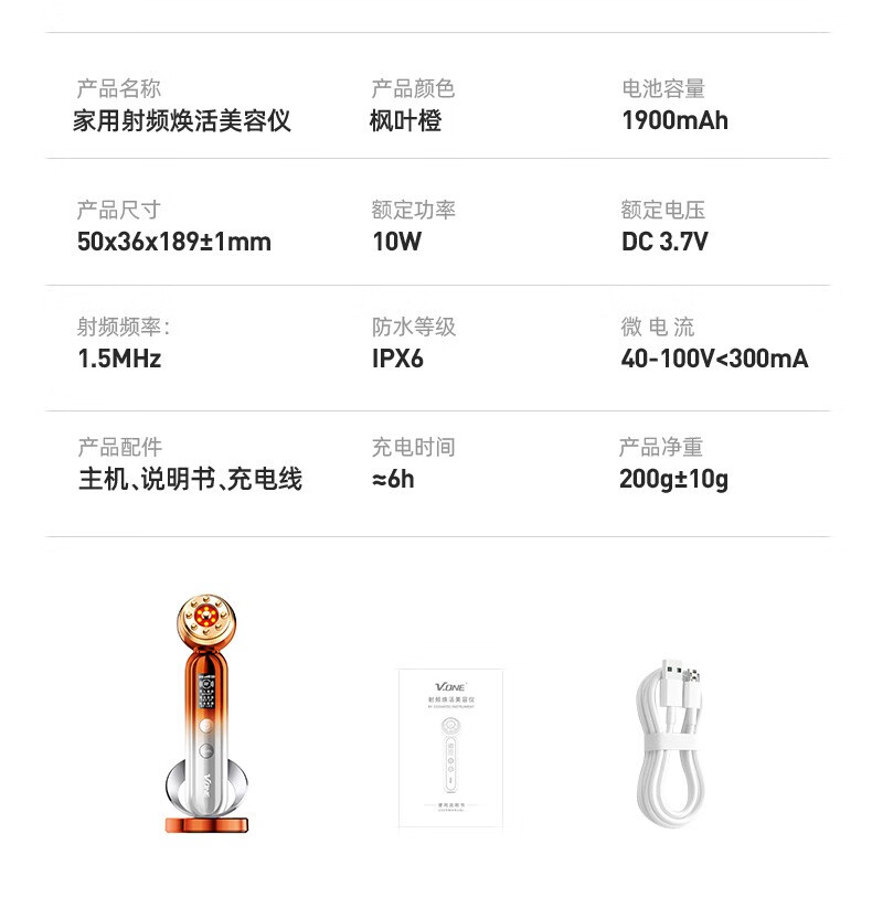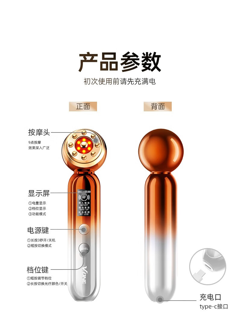 商品名称:V.one 射频美容仪 无底座 按摩头镀钛V-R201 宝石红:6973098350361 翡翠绿:6973098350378 下单备注颜色
