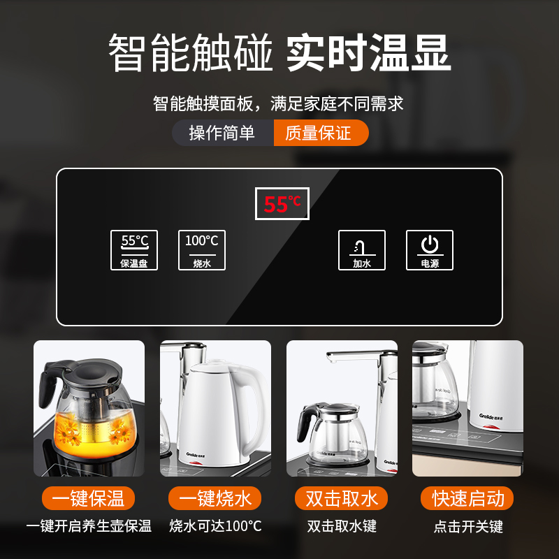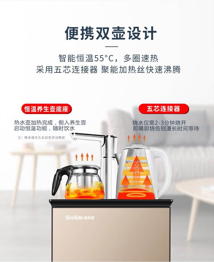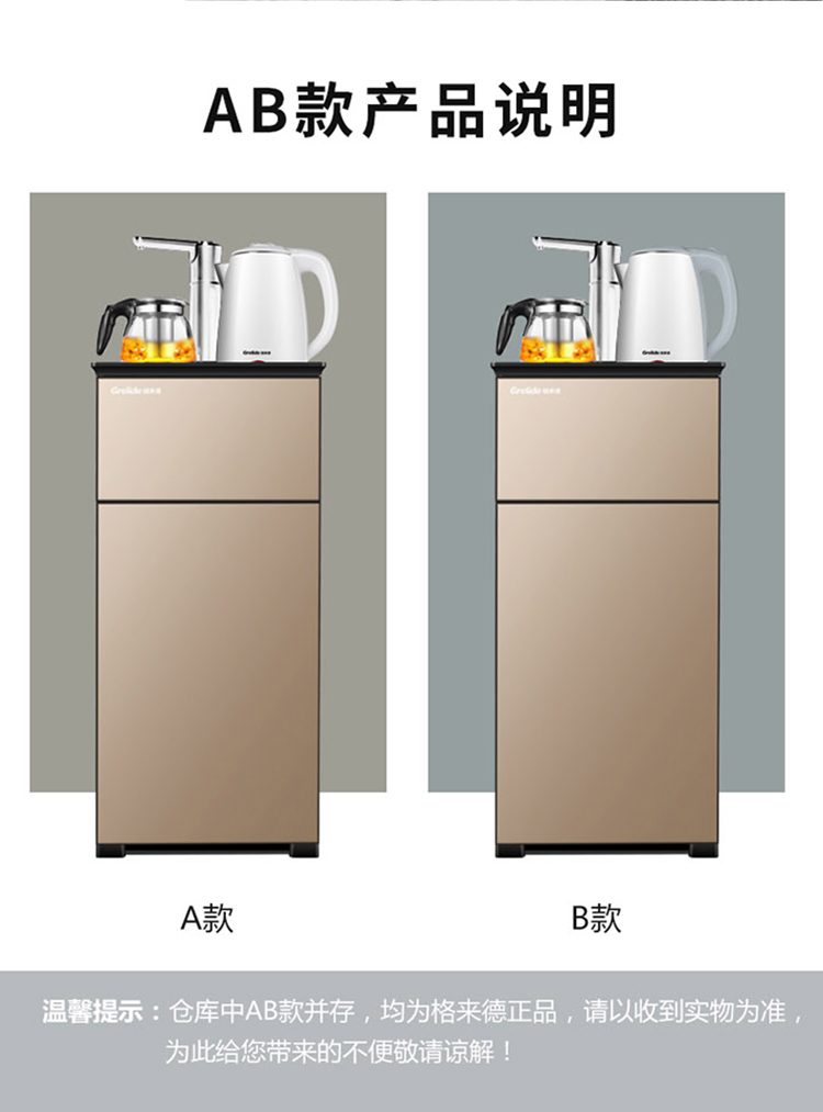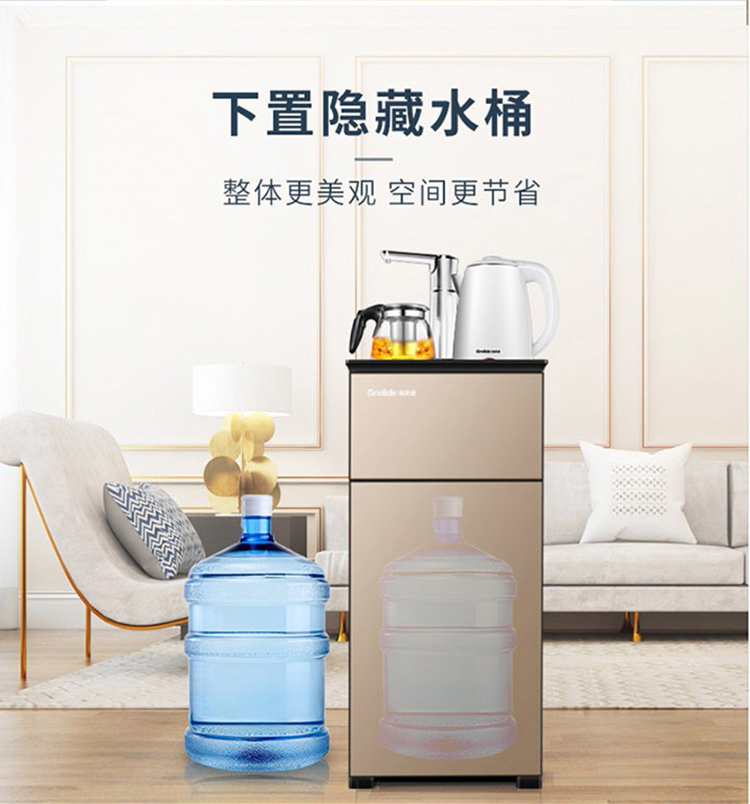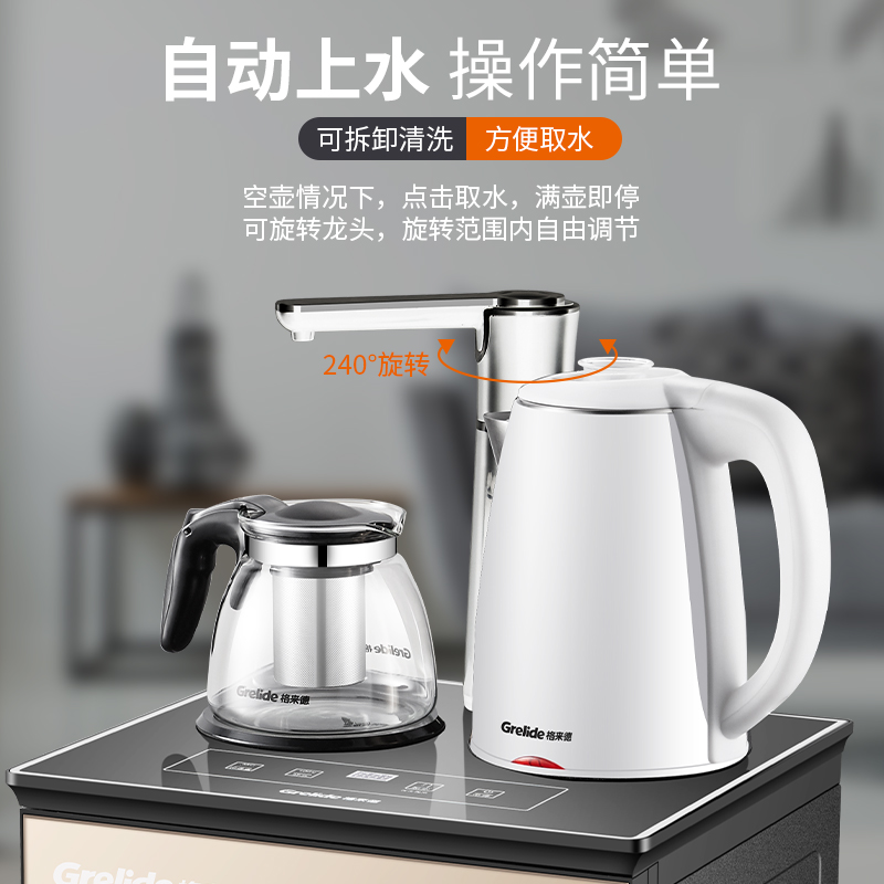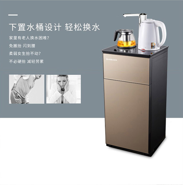 格来德(Grelide)茶吧机家用电热烧水饮水机台式自动欧式高档下置水桶大尺寸多功能冷热智能柜子中式客厅立式X3 金色 1.2L