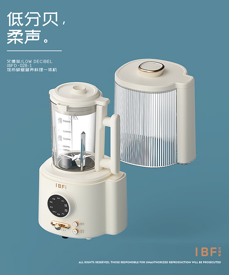 商品名称:艾博菲柔音LOWDECIBEL加热破壁营养料理机 IBFD-028-1 6970070177299