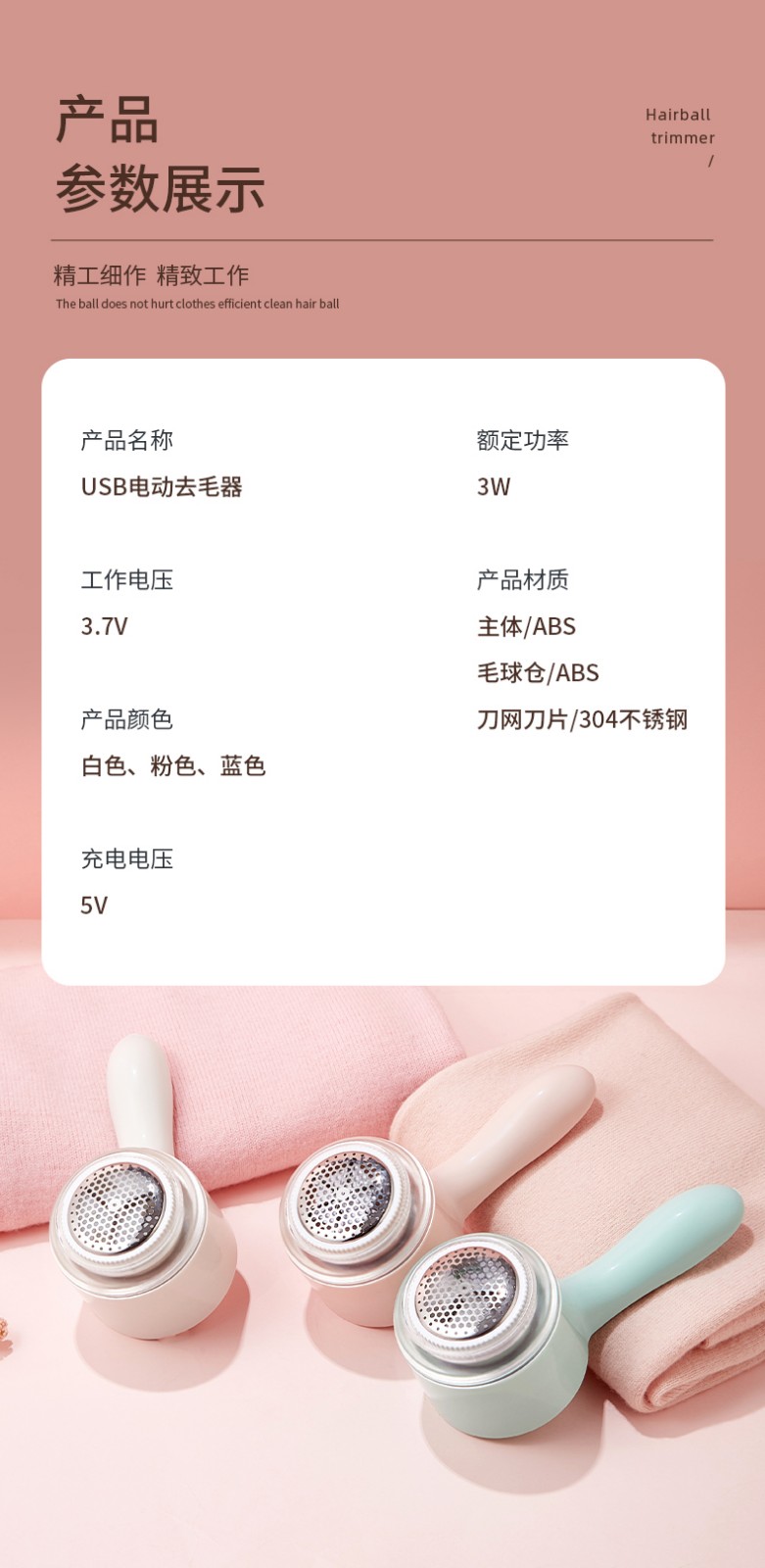 商品名称:金正 JZ-M19毛球修剪器 粉色/蓝色 下单备注颜色