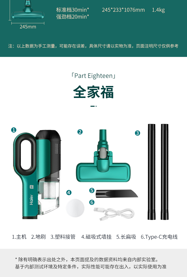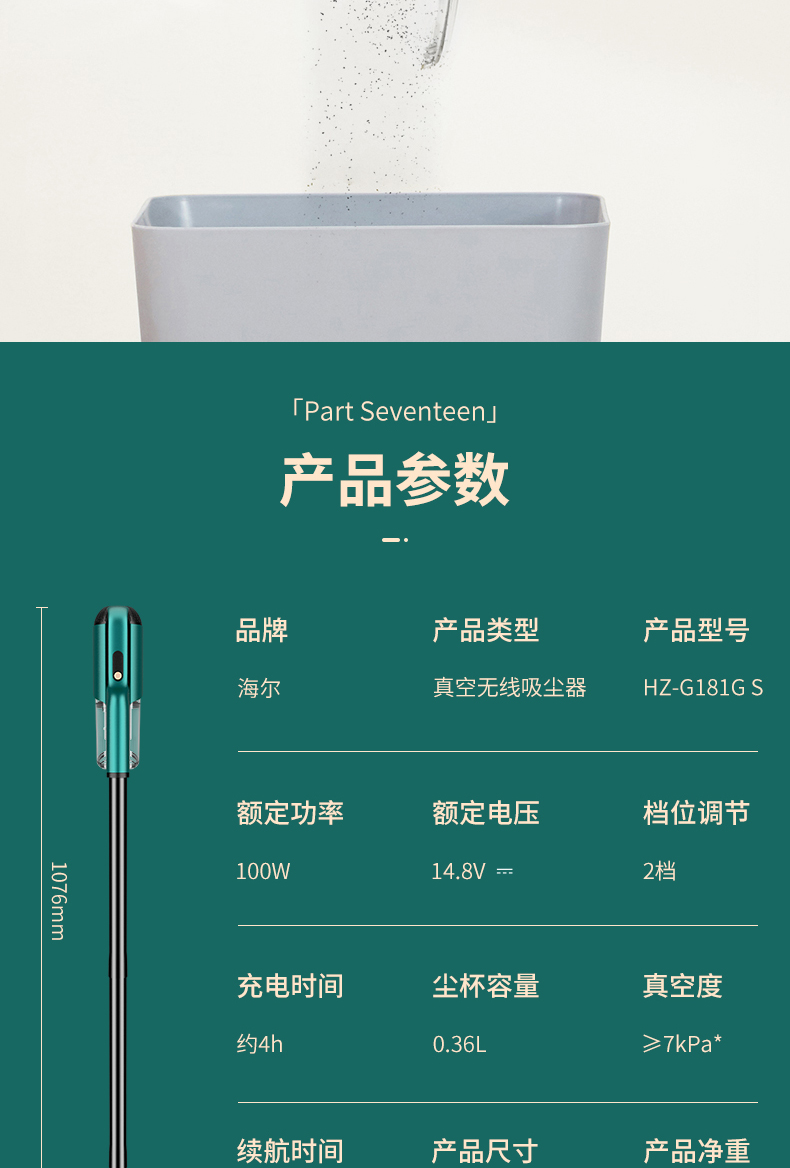 商品名称:海尔/Haier 多功能无线家用吸尘器 HZ-G181G S 手持便携式大吸力 6927886451600 颜色随机发