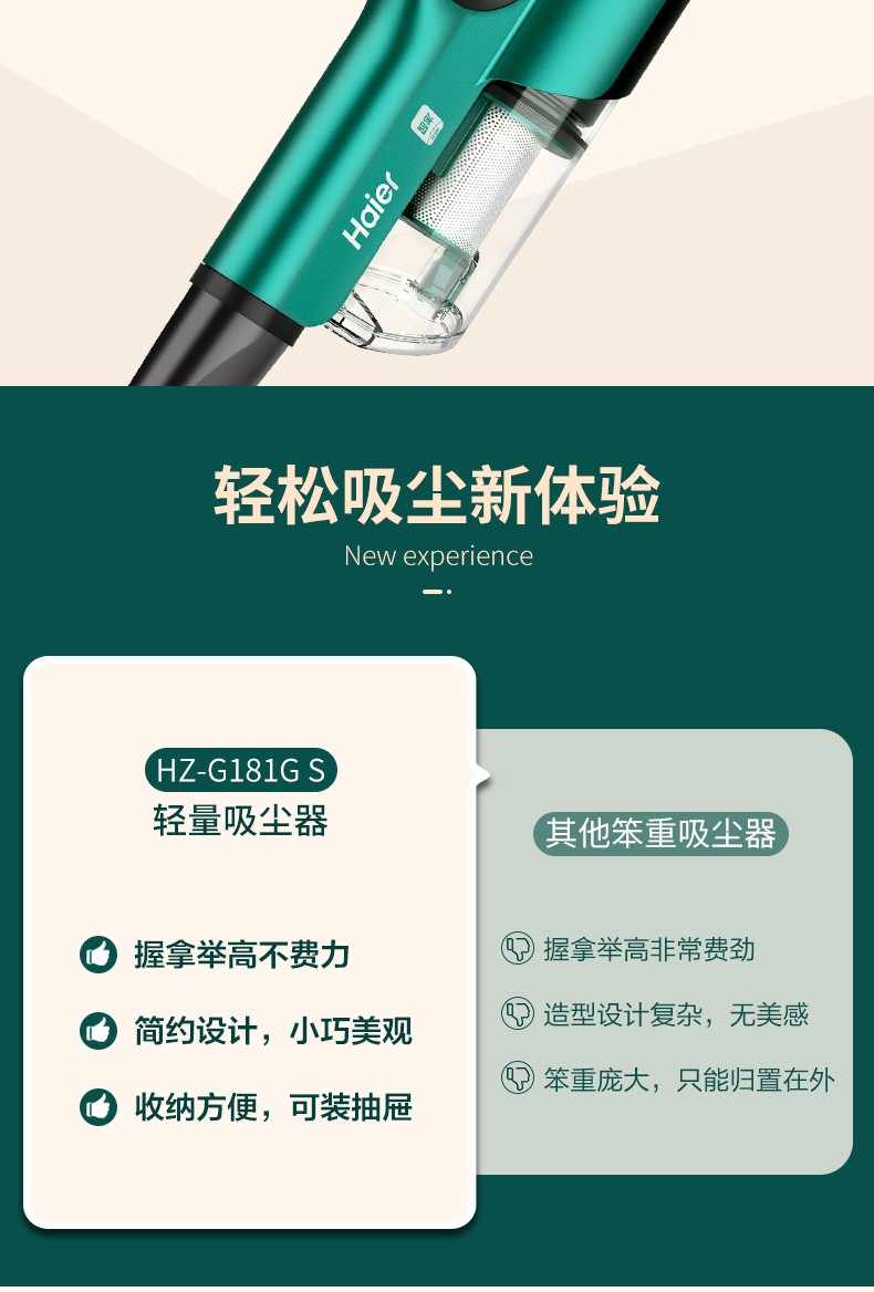 海尔/Haier 多功能无线家用吸尘器 HZ-G181G S 手持便携式大吸力 6927886451600 颜色随机发
