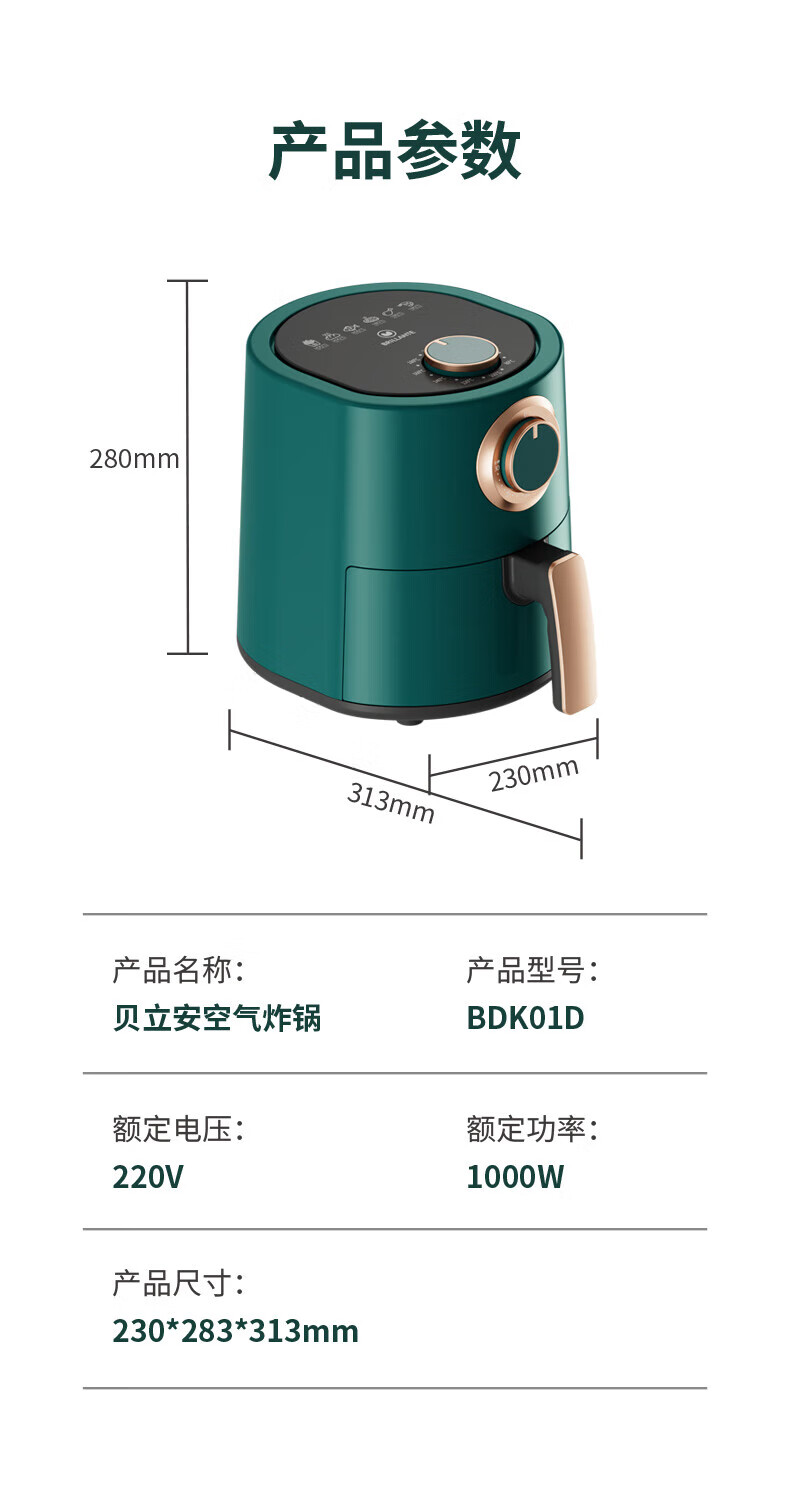 商品名称:贝立安 空气炸锅3.5L 6976203030059