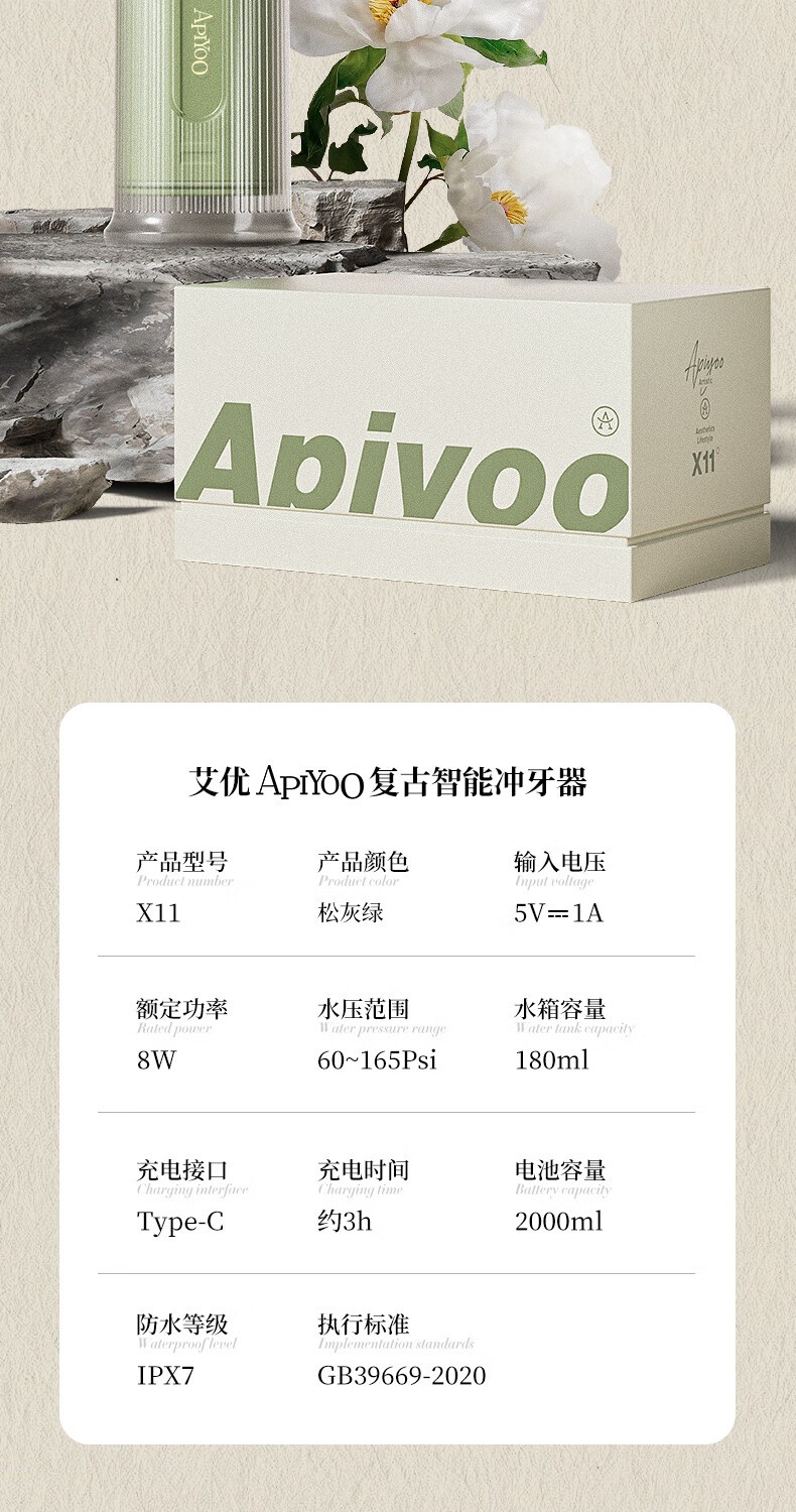 商品名称:艾优 复古智能冲牙器X11复古绿 6970871389426