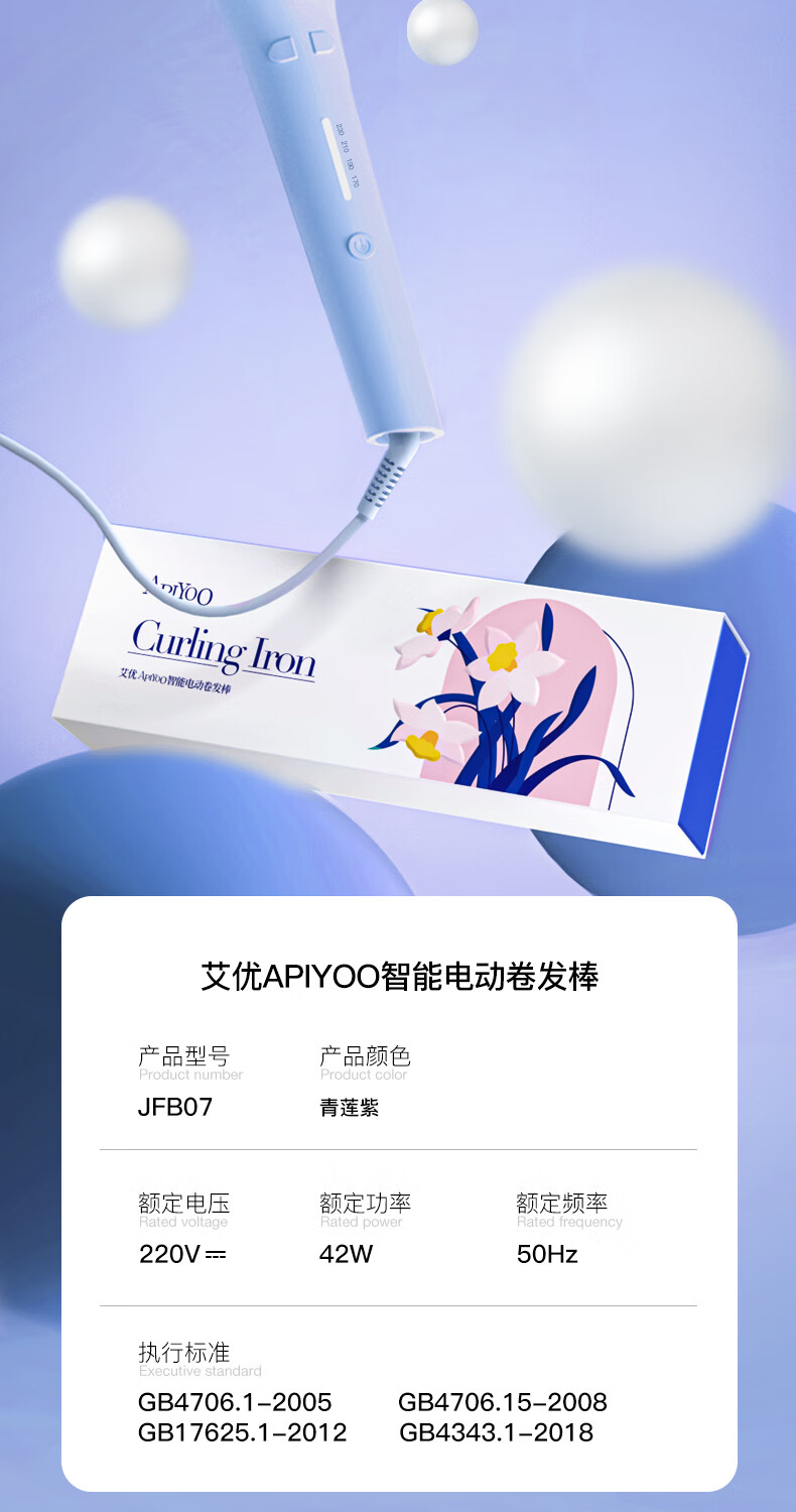 商品名称:艾优 智能电动卷发棒 JFBO7紫 6970871388757