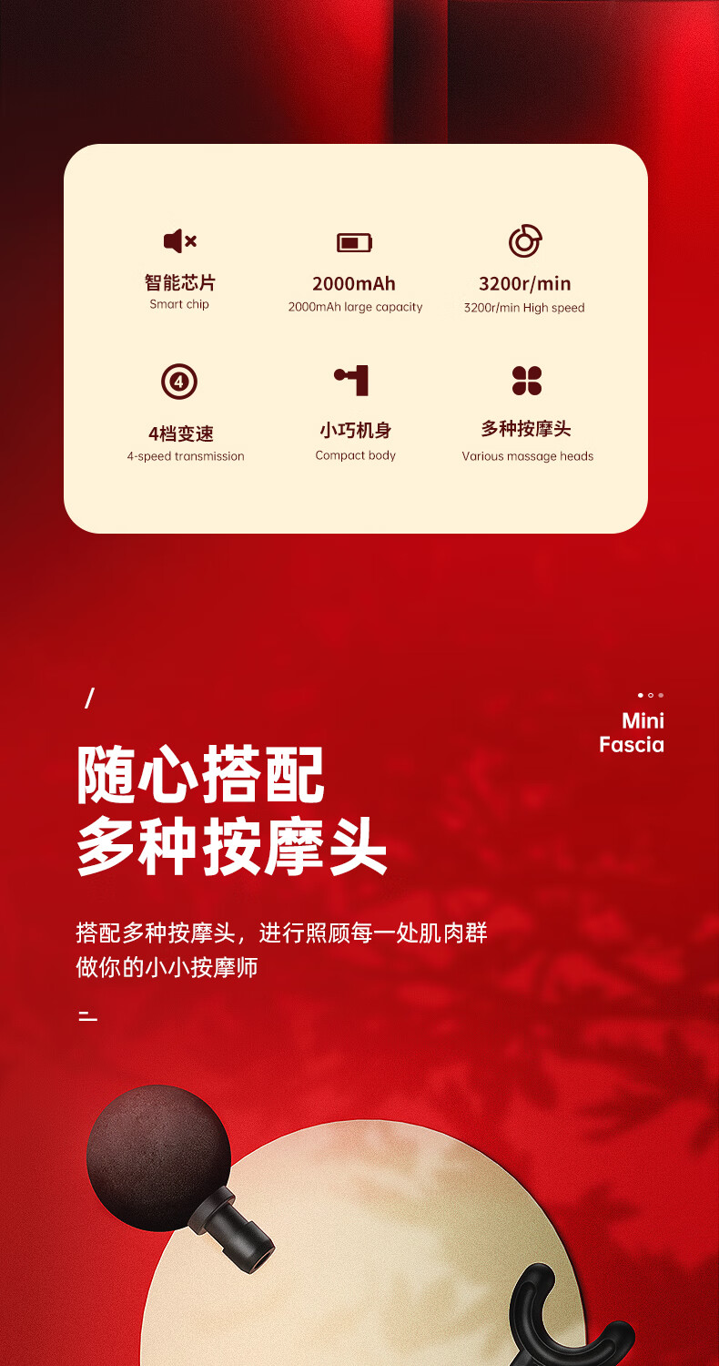 艾优 Mini筋膜枪F12-Plus红色 6970871386722