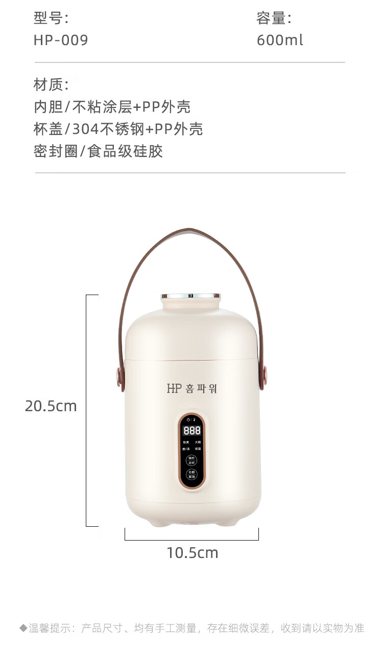 商品名称:H.P홈파워 HP-009麦禧-营养炖煮锅 600ML 6976517260142