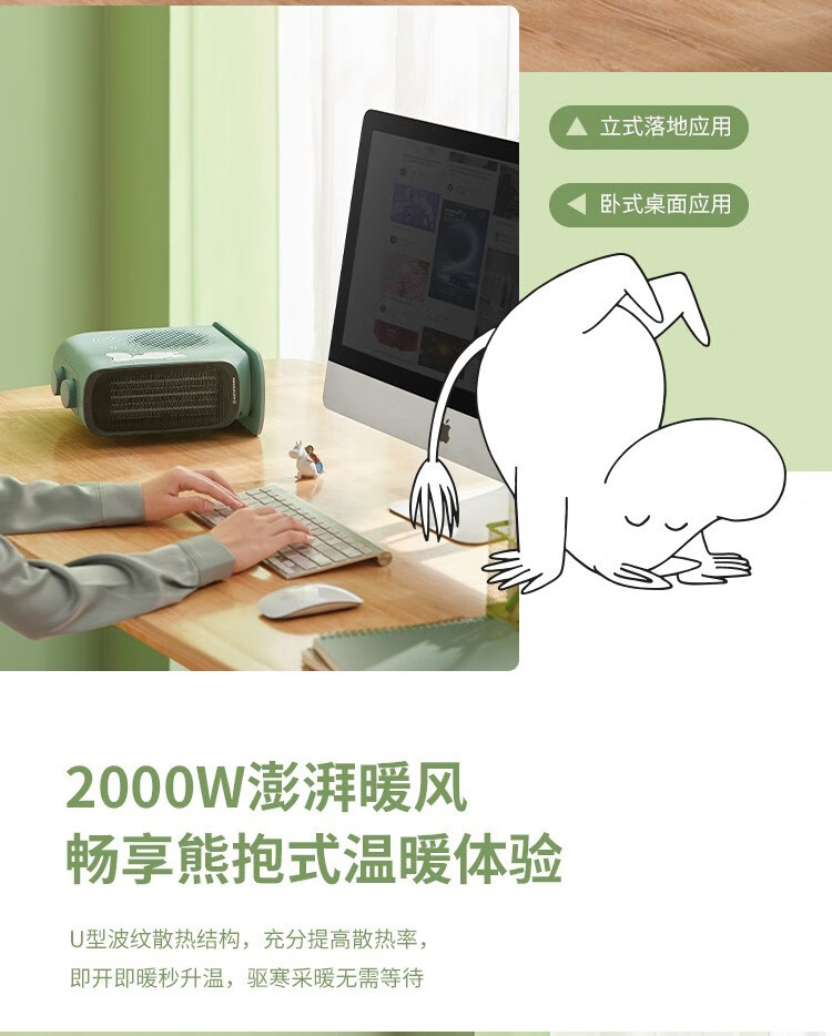 艾美特(AIRMATE) 取暖器暖风机桌面宿舍办公家用节能小型电暖气速热电暖器 WT20-X1白色经典款 偏远另加运费