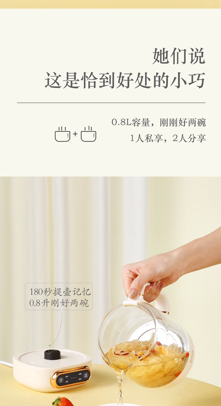 艾美特(AIRMATE)简约派养生壶电水壶办公室便携水壶 CS0608 0.8L 偏远另加运费