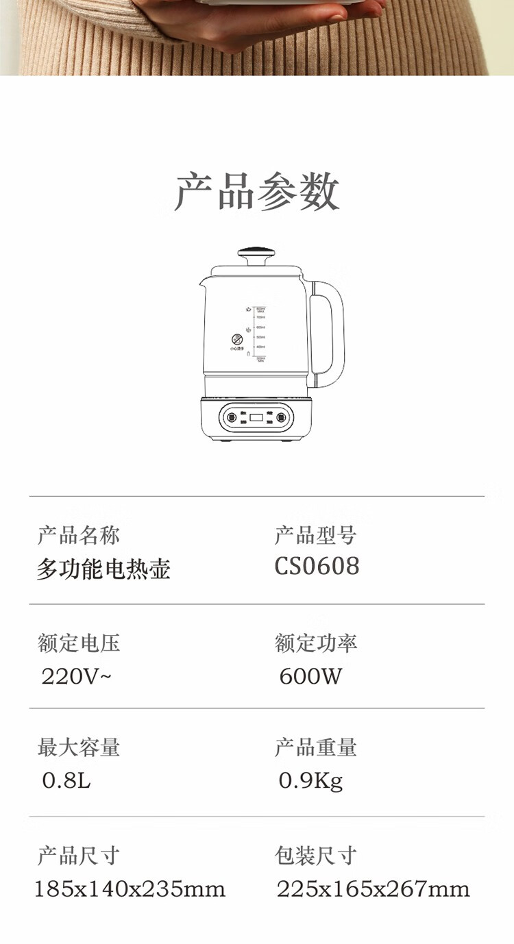 商品名称:艾美特(AIRMATE)简约派养生壶电水壶办公室便携水壶 CS0608 0.8L 偏远另加运费