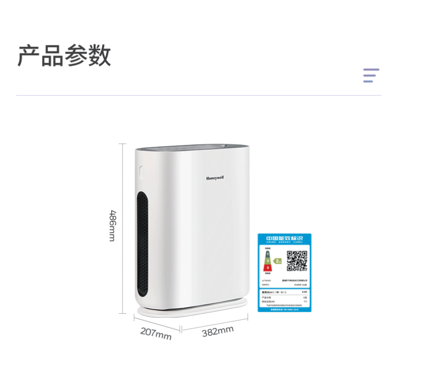 商品名称:霍尼韦尔(honeywell) 空气净化器HW-H02A 6973835840650 除醛除霾除二手烟除五大气味