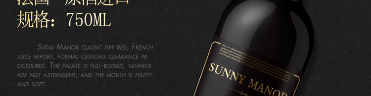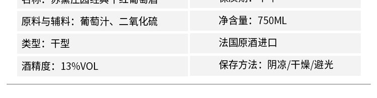 商品名称:S-苏黛庄园 经典干红葡萄酒 13度红酒葡萄酒 750ml/瓶 单瓶装