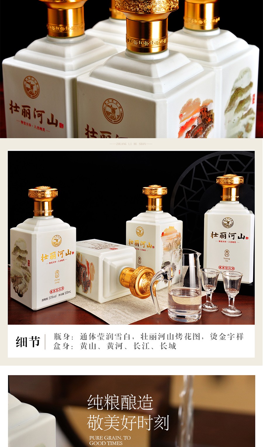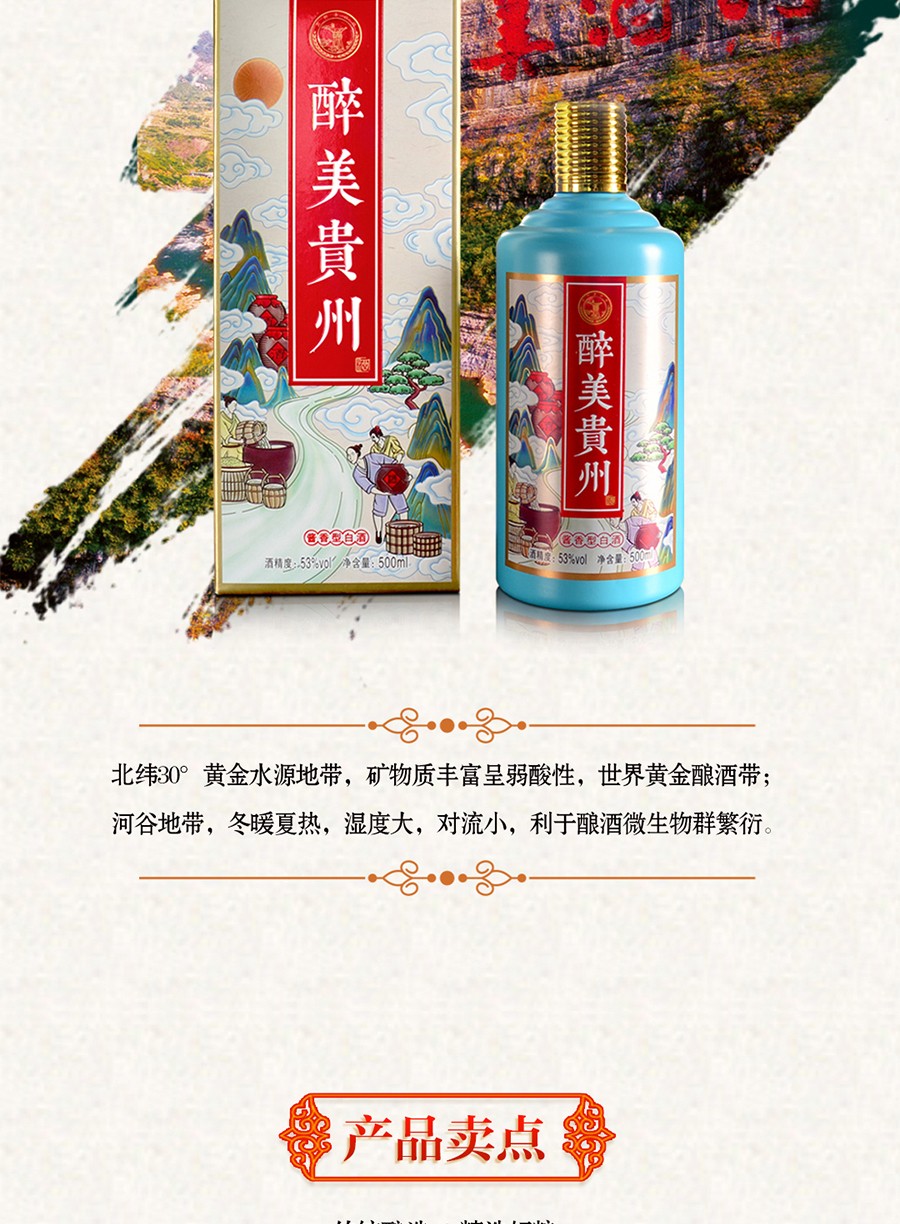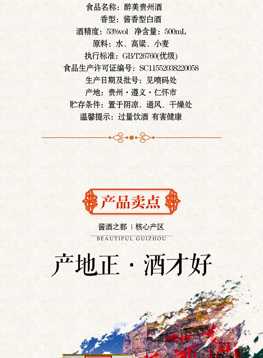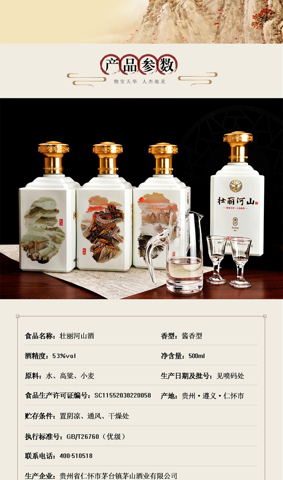 商品名称:贵州茅台镇 53度 酱香型粮食白酒 500ml 壮丽河山酒*4瓶整箱