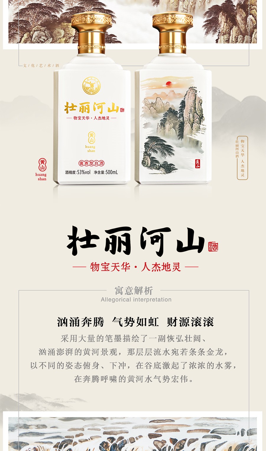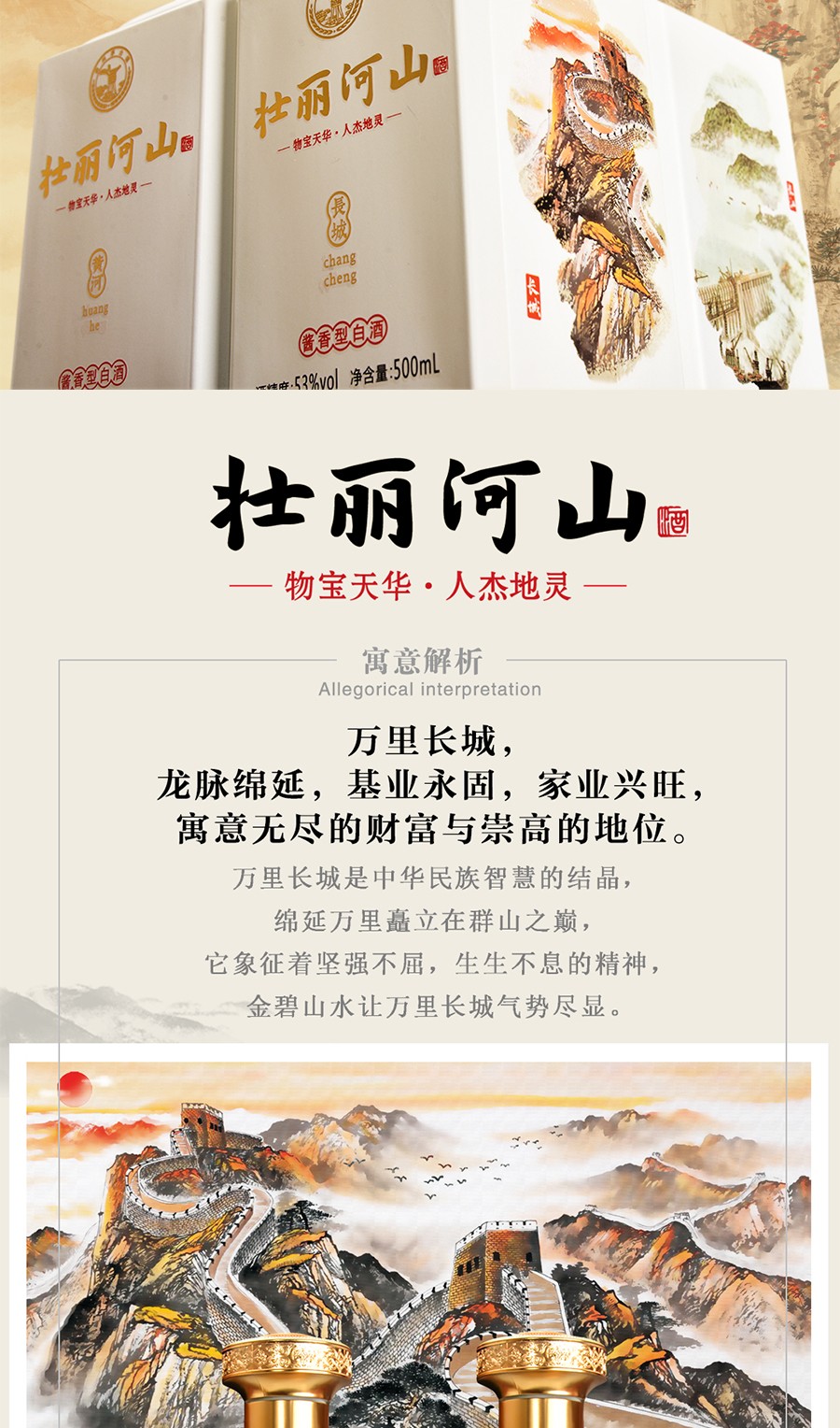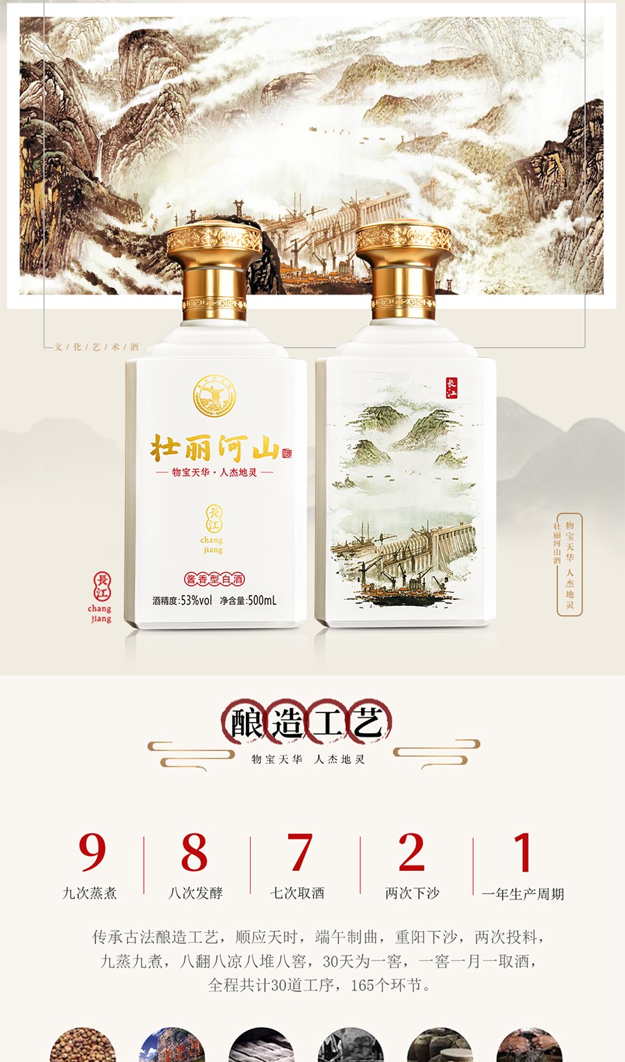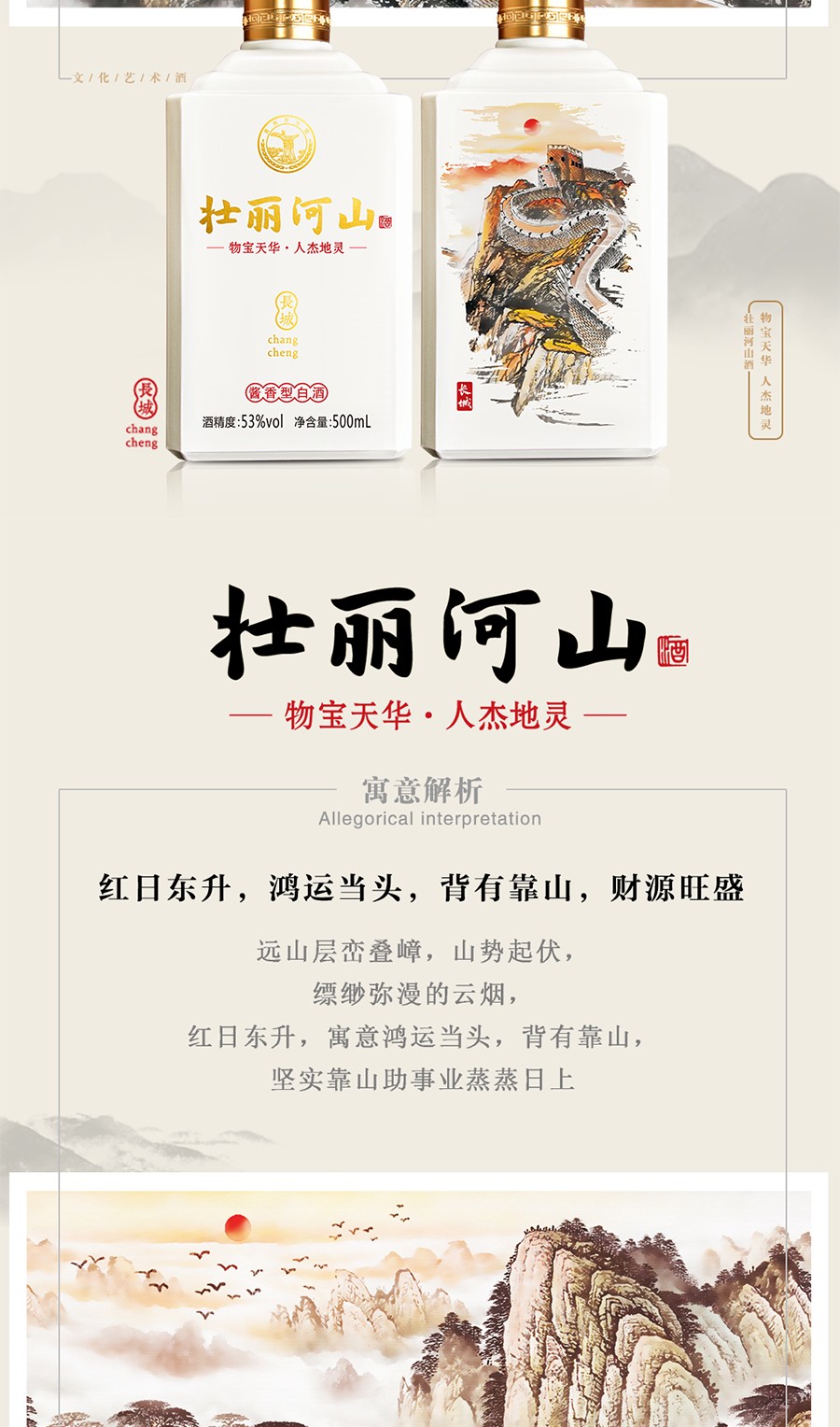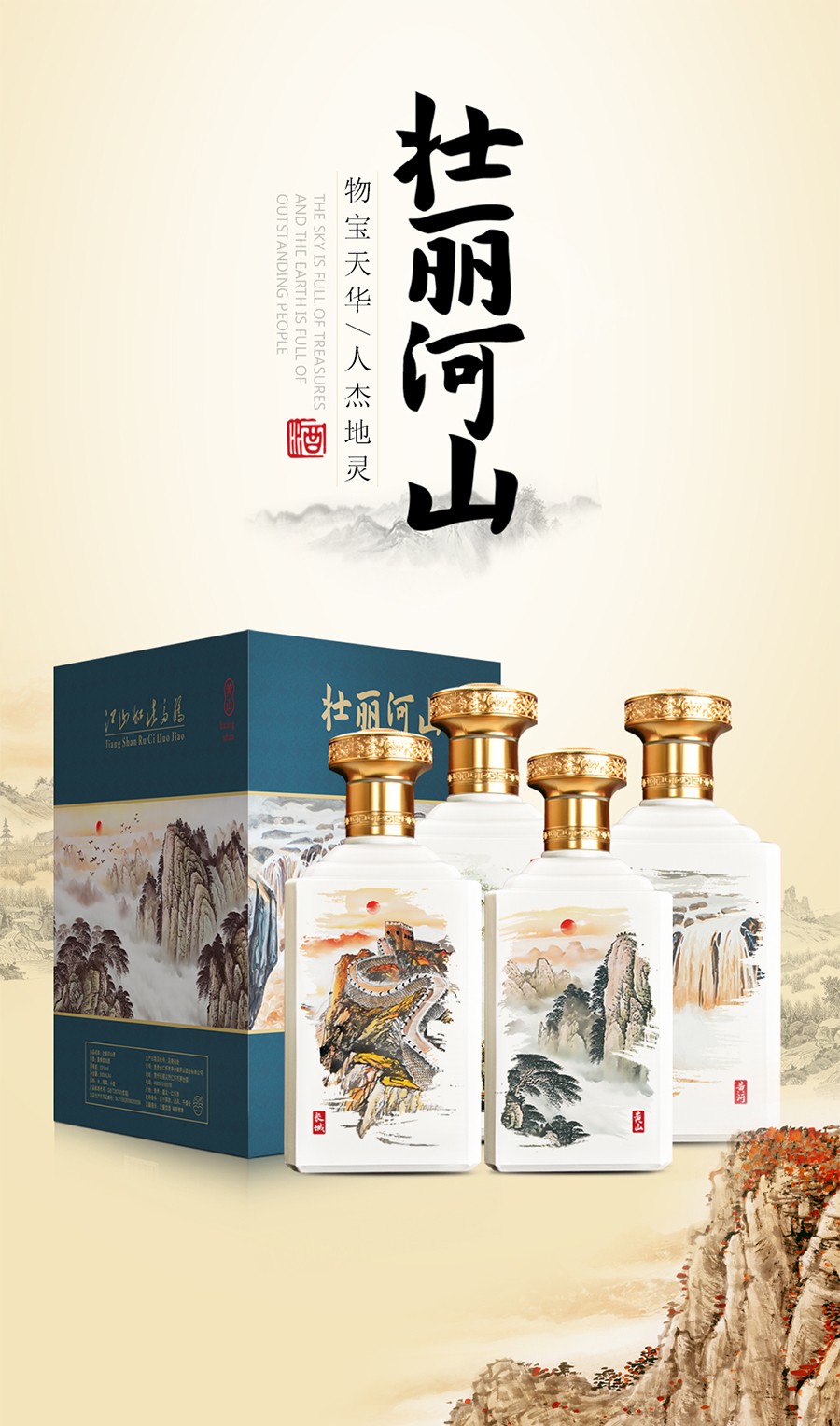 商品名称:贵州茅台镇 53度 酱香型粮食白酒 500ml 壮丽河山酒*4瓶整箱