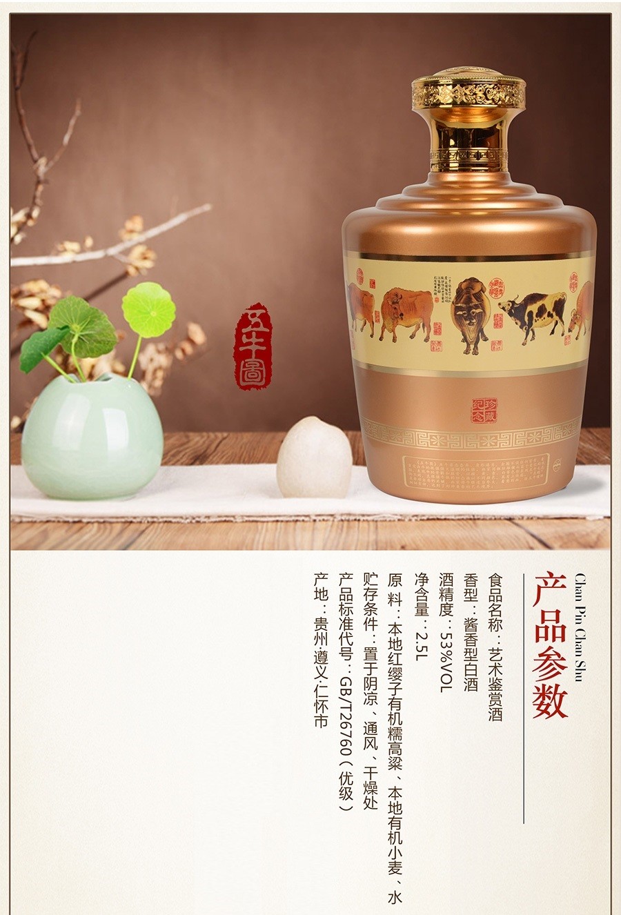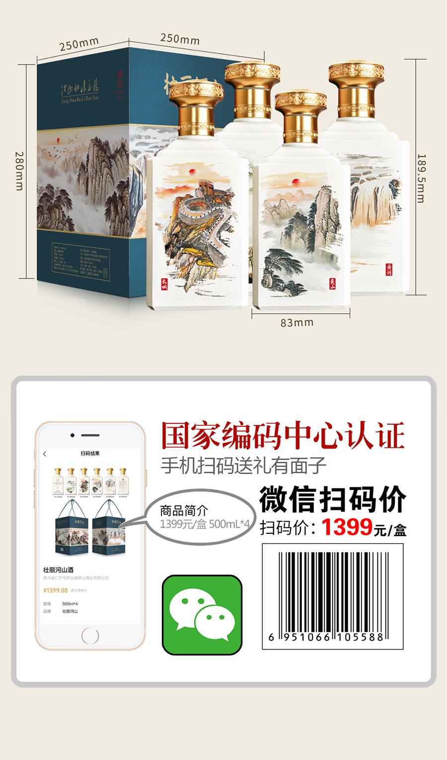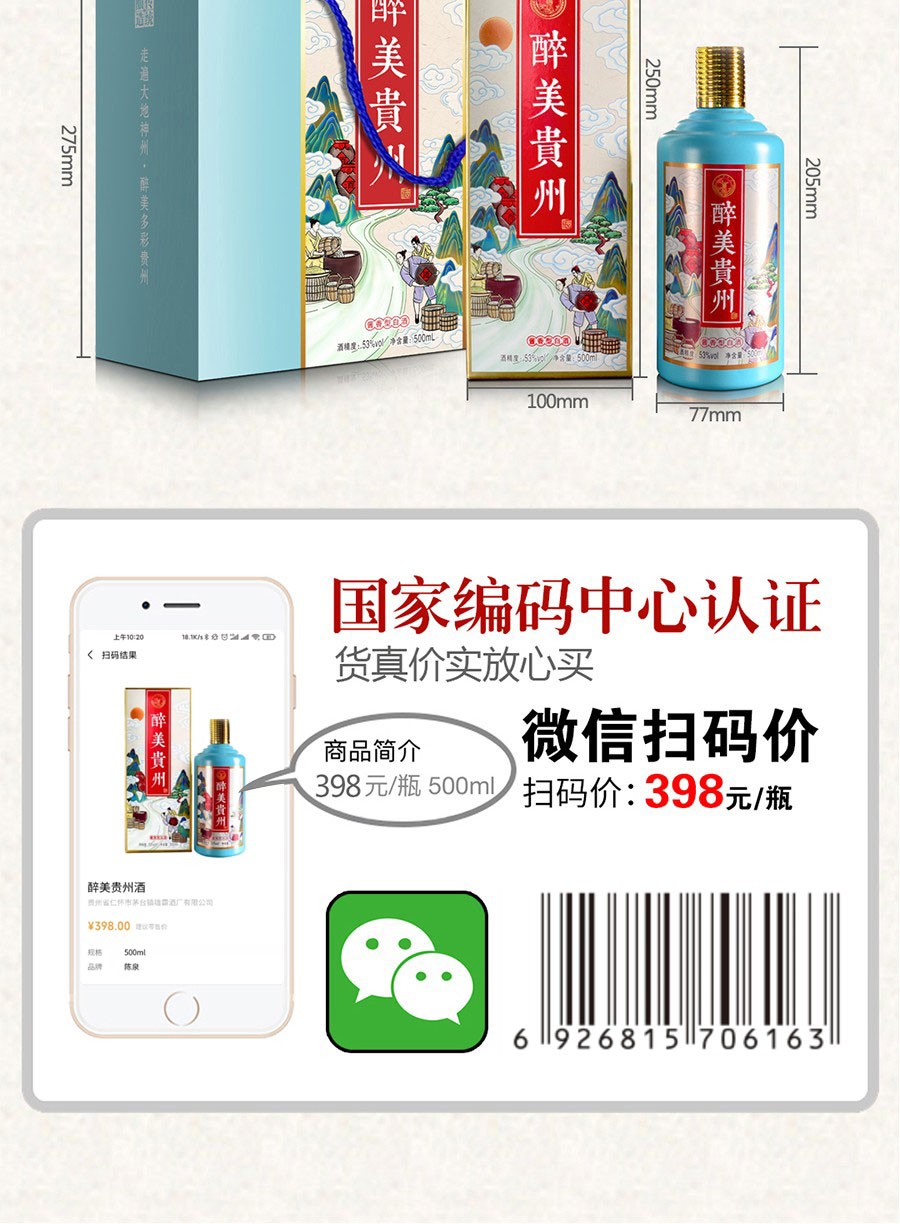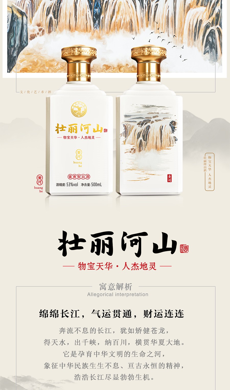 商品名称:贵州茅台镇 53度 酱香型粮食白酒 500ml 壮丽河山酒*4瓶整箱