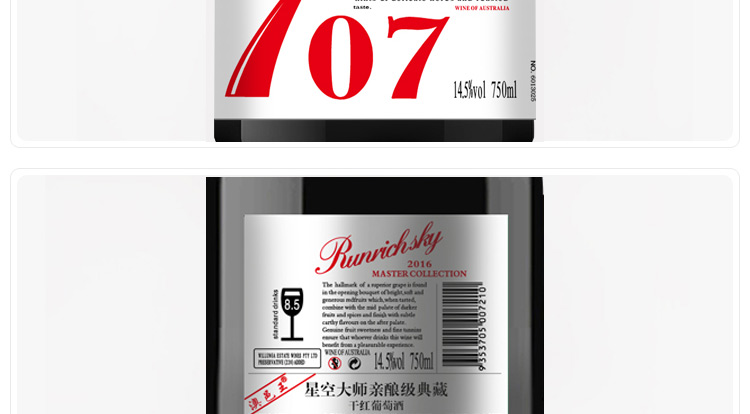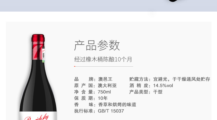 商品名称:J-澳邑王星空大师 亲酿级典藏干红葡萄酒红酒707 14.5%vol 750ml/瓶