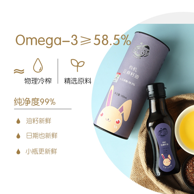 晟麦贝贝日记有机亚麻籽油100ml 冷榨初榨一级食用油纯胡麻油正品