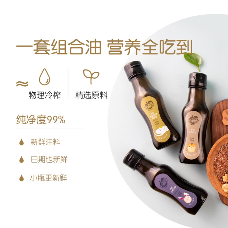 商品名称:晟麦贝贝日记 有机亚麻籽油核桃油橄榄油100ml*3瓶食用油组合礼盒