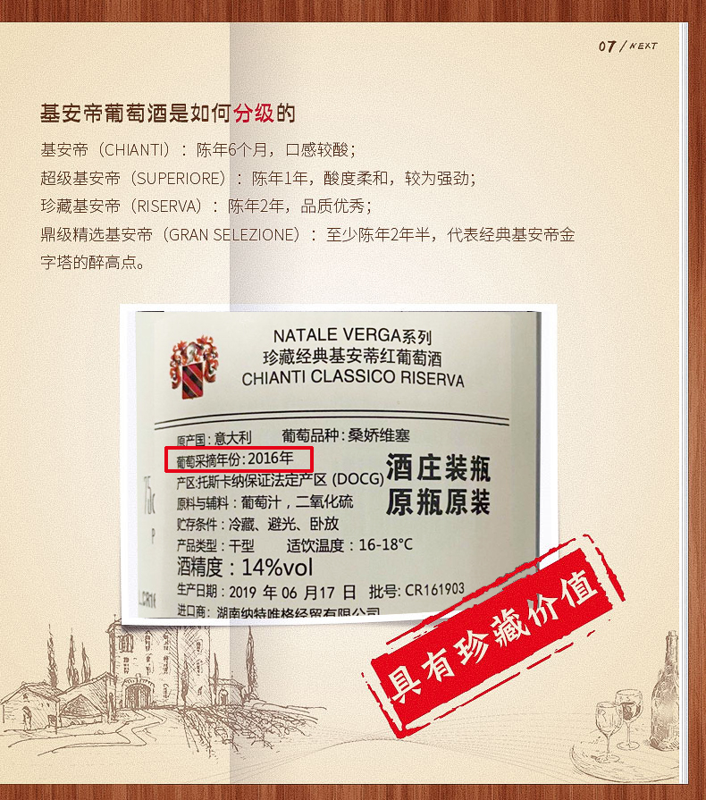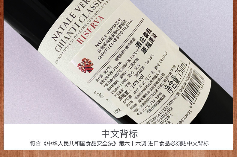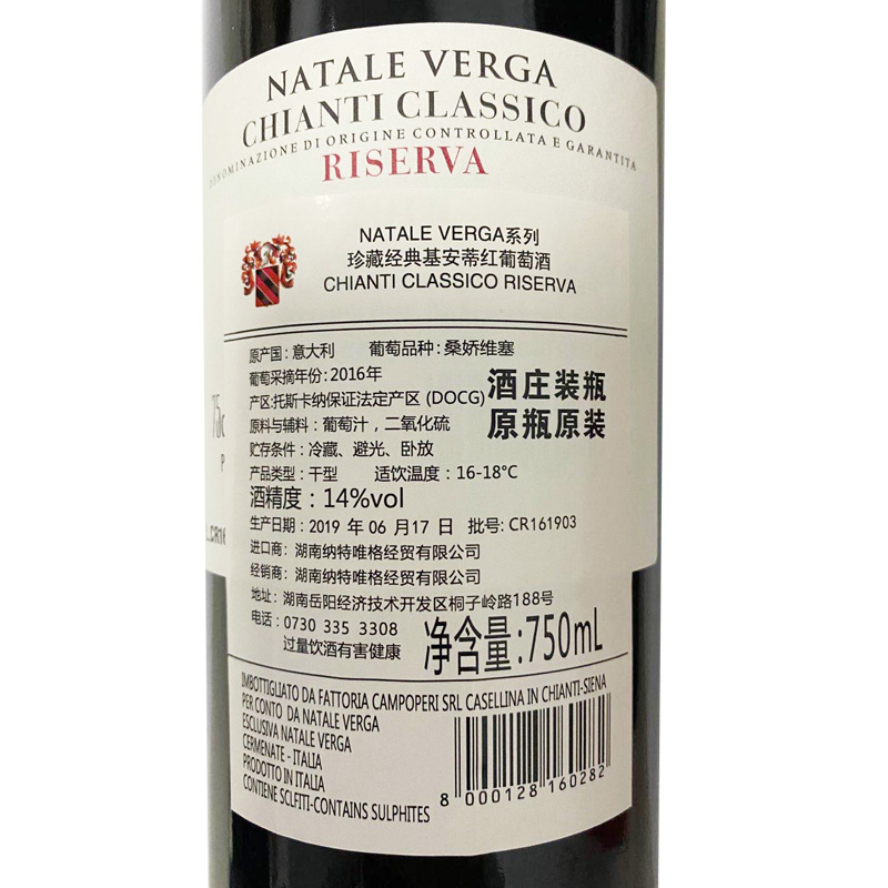 商品名称:Verga意大利进口红酒 珍藏经典基安蒂干红葡萄酒docg单支装750ML
