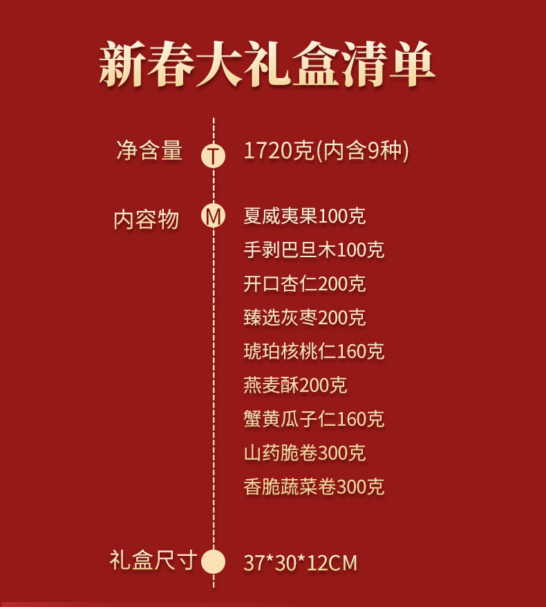 商品名称:嘉禾月 节日好礼 精美坚果零食礼盒 感恩礼 1400克升级缤纷臻礼1720g