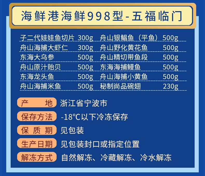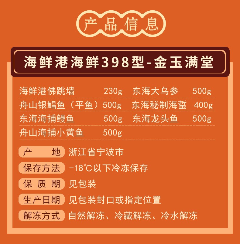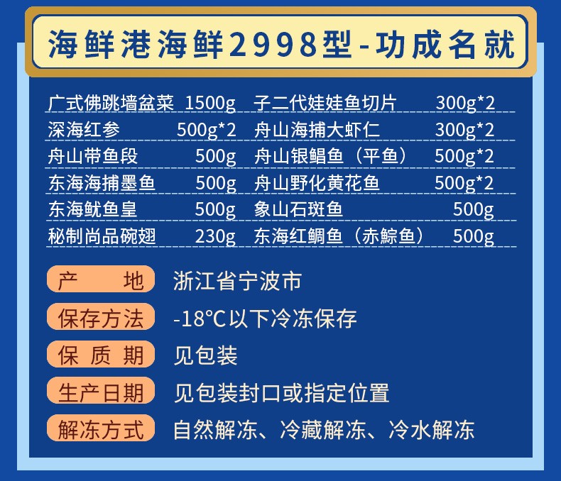 商品名称:海鲜港-22年海鲜港1398型-前程似锦6330g(新疆、西藏、青海等偏远地区不发货)