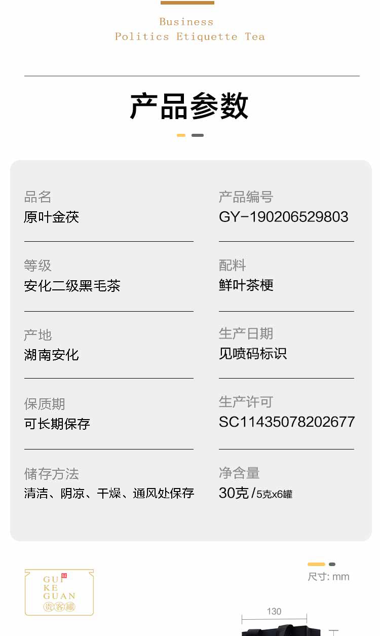 商品名称:国殷 贵客罐 原叶金茯 6罐装(净量30g)黑色 西藏新疆不包邮