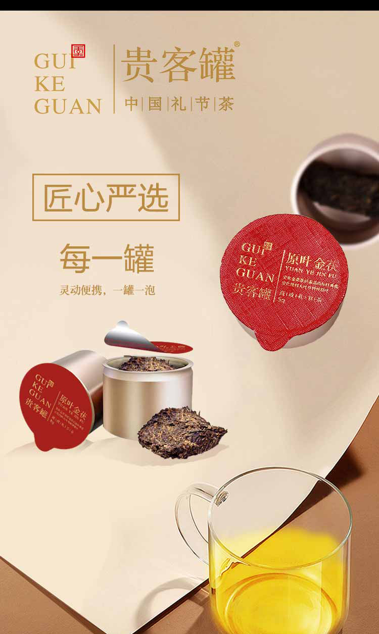 国殷 贵客罐 原叶金茯 6罐装(净量30g)黑色 西藏新疆不包邮