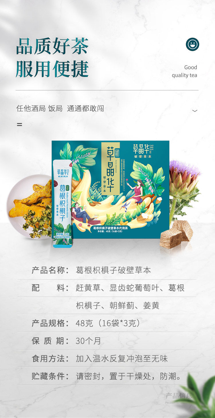 商品名称:草晶华破壁草本葛根枳椇子茶48g/盒(新疆西藏运费另算)