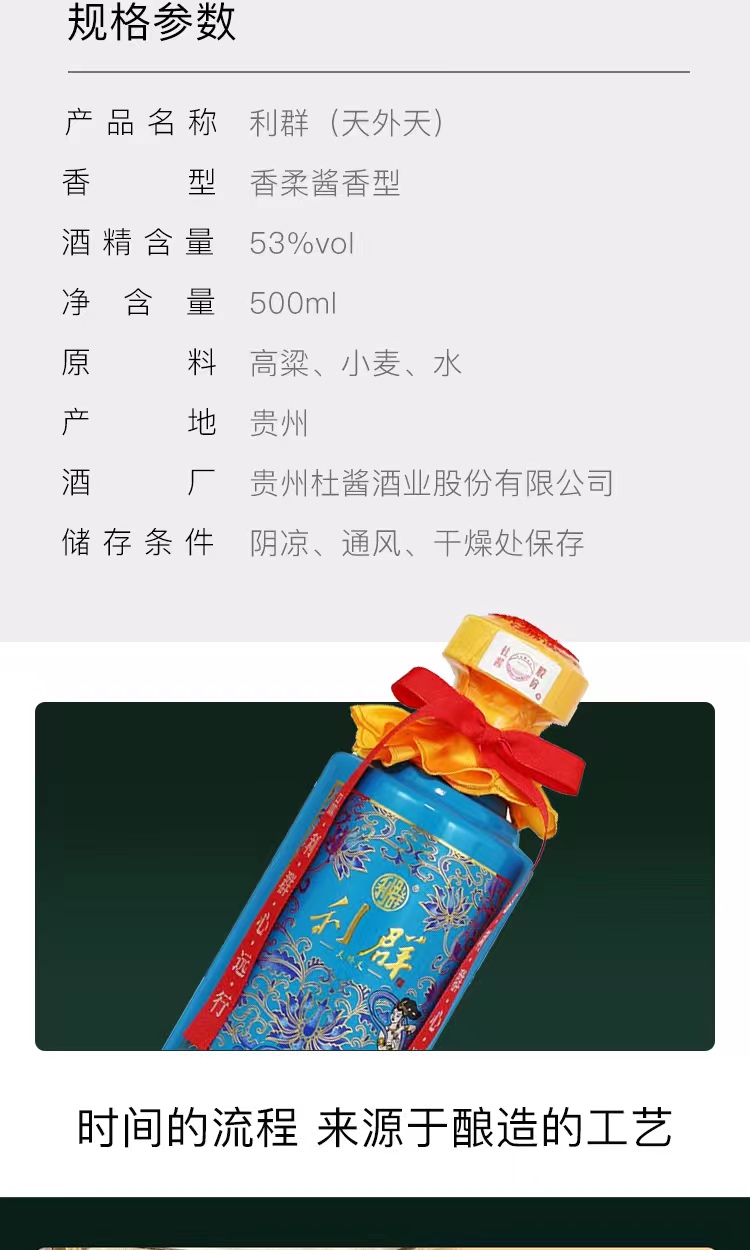 商品名称:杜酱利群酱酒 天外天 53度香柔酱香型白酒 高粱坤沙粮食酒 酱酒核心产区出品 整箱6瓶礼盒装+12只小酒杯