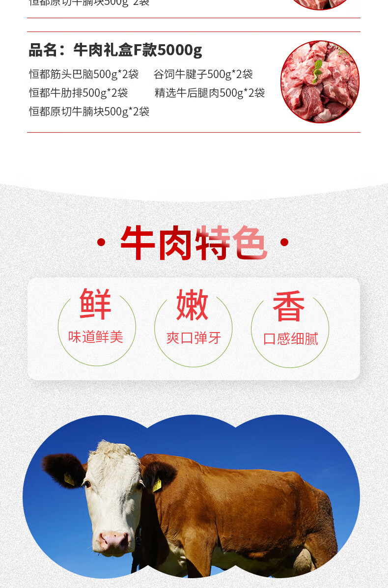 商品名称:恒都 国产原切谷饲牛肉礼盒A款 1800g 6973305390869 配置按最新的发