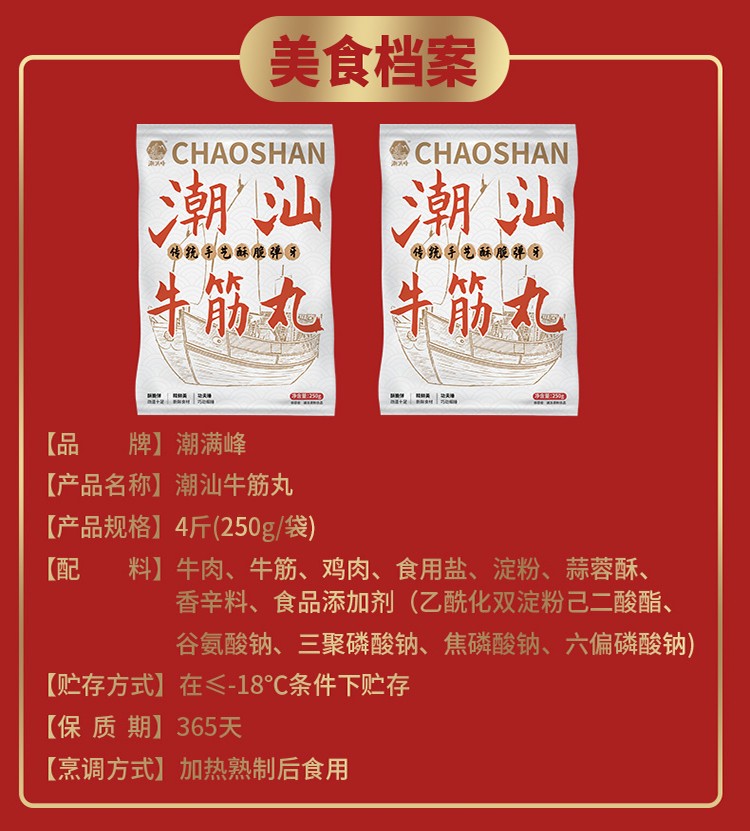 商品名称:潮满峰 潮汕牛筋丸礼袋版 4斤装(8袋*250g)
